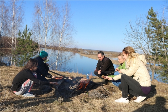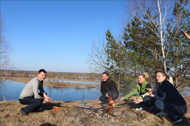 После уборки территории все весело пообщались возле костра, полюбовались разливом Сожа с его высокого берега. Возвращались мы в Корму с чувством удовлетворения от проделанной работы и хорошим настроением от небольшого отдыха на свежем воздухе в дружной компании.