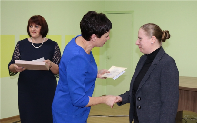 Сертификаты и премии районного исполнительного комитета педагогам вручали заместитель председателя райисполкома Наталья Сидорова, председатель районного объединения профсоюзов Любовь Ларченко, начальник отдела образования, спорта и туризма Наталья Евтухова, главный специалист отдела образования, спорта и туризма Дмитрий Шатликов.