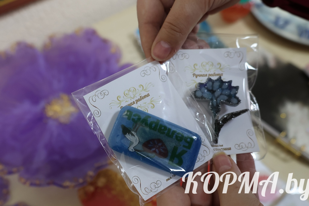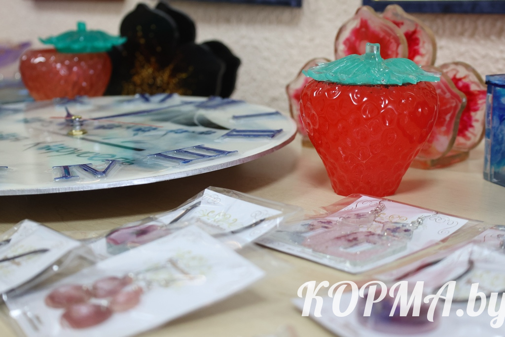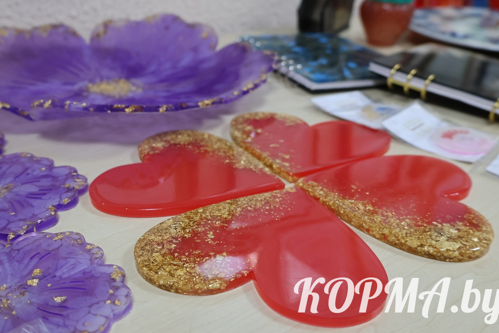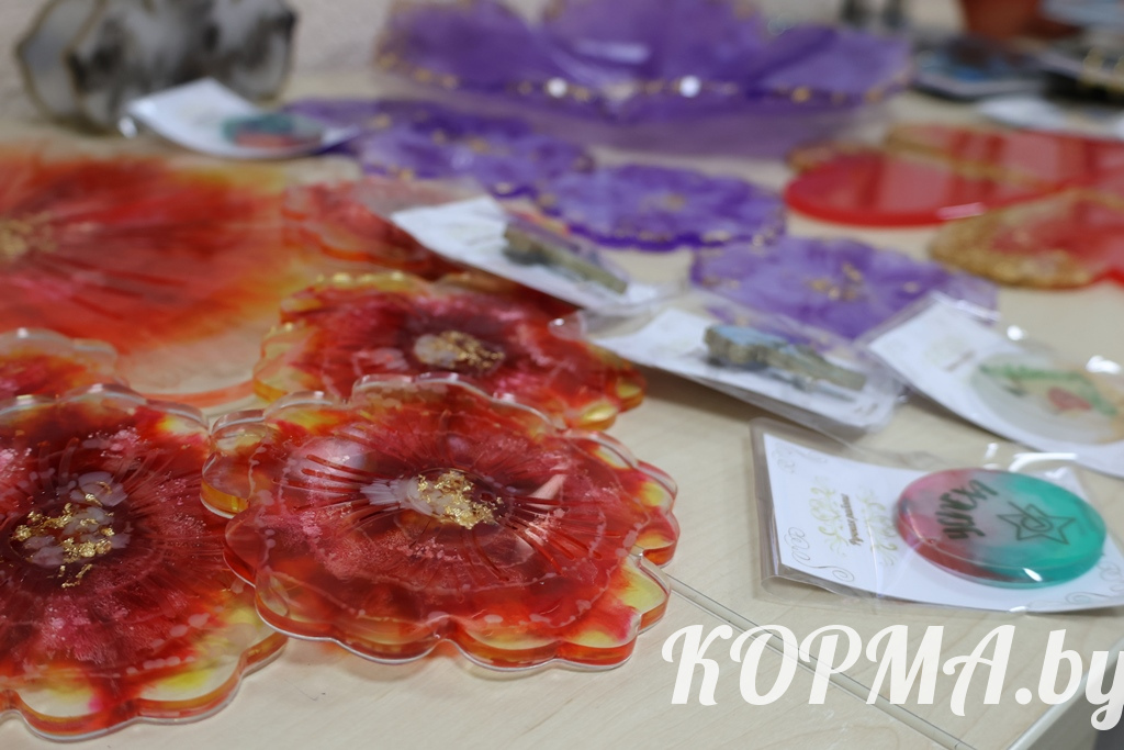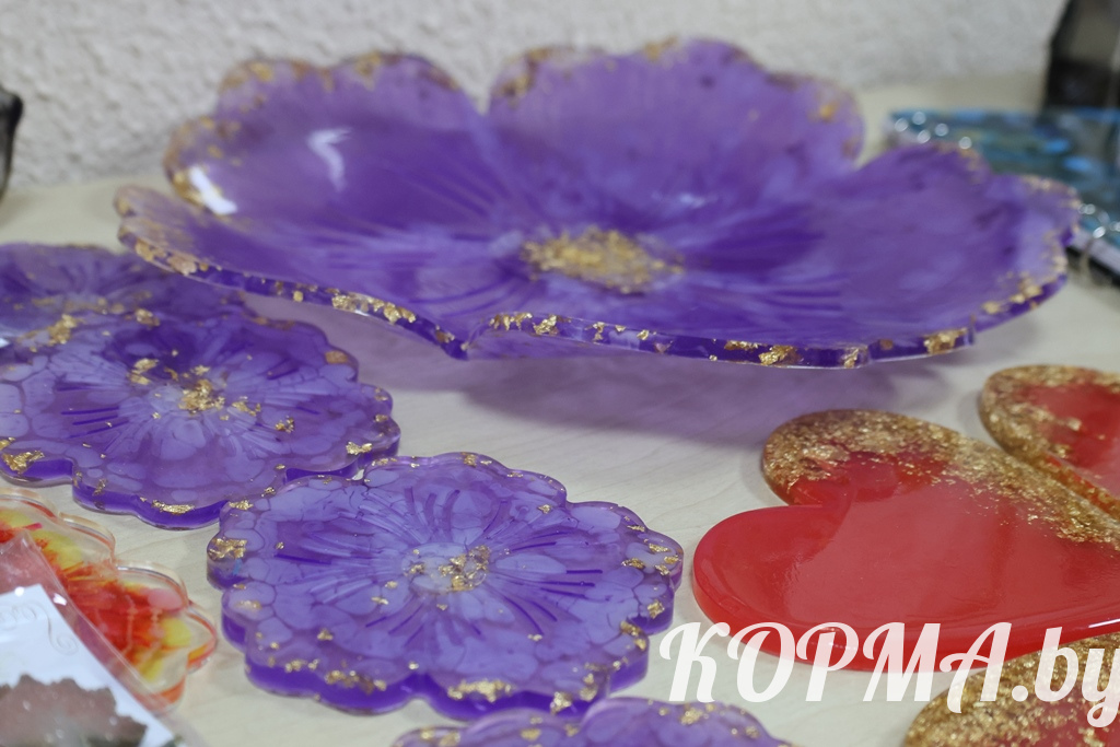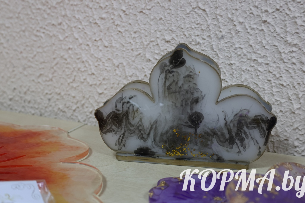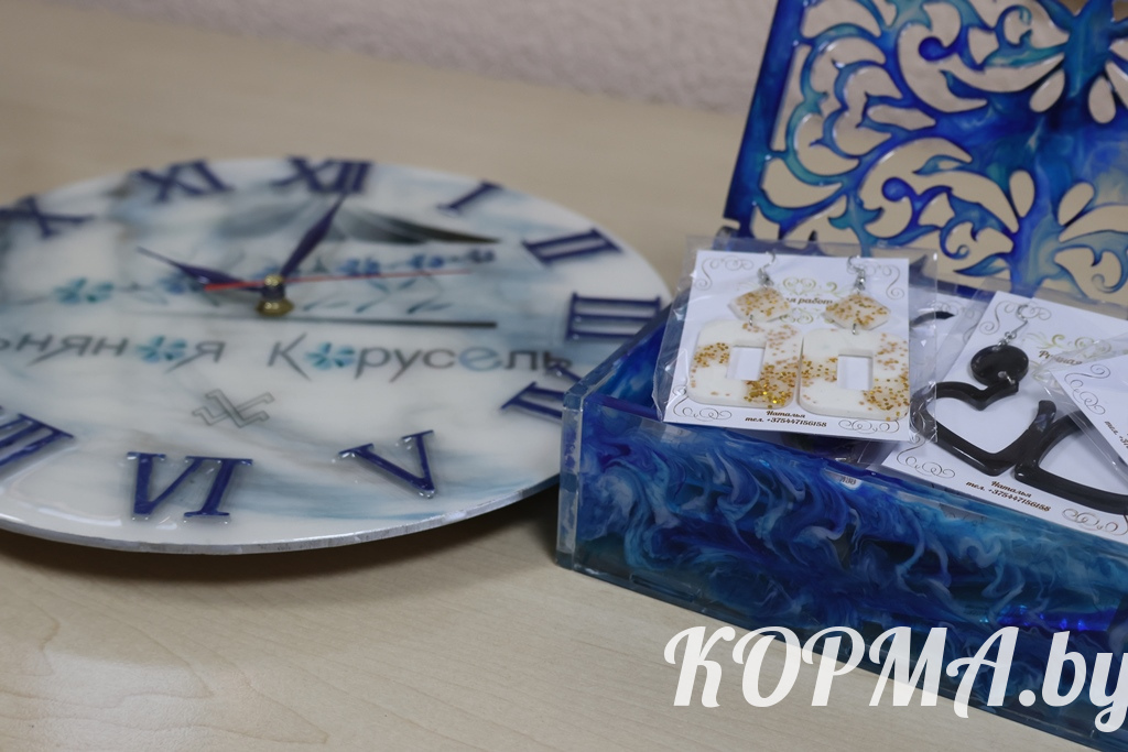 Изделия из эпоксидной смолы становятся всё более популярными. В г. п. Корма есть своя мастерица, которая создаёт такие необычные вещи. Учитель-дефектолог детского сада Nº3 Наталья Трапкачёва сумела превратить давнее увлечение рукоделием в настоящее творчество.