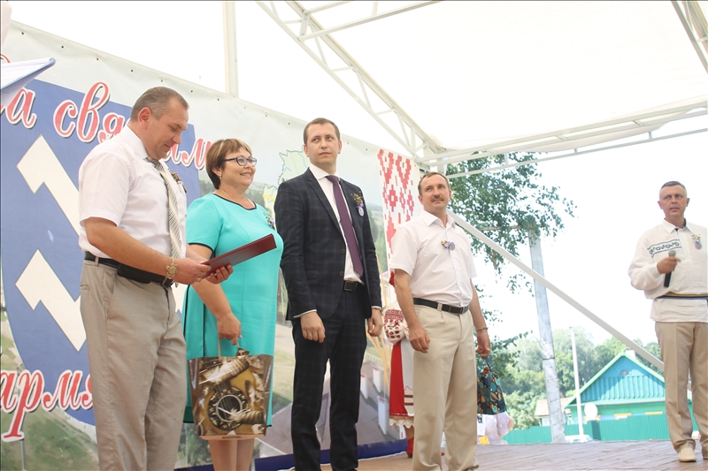 Льняной сноп, как символ фестиваля был вручен председателю Кормянского районного исполнительного комитета Алексею Ясонову. В приветственном слове Алексей Александрович отметил, что идея создать такое событие, как фестиваль «Льняная карусель» родилась год назад.