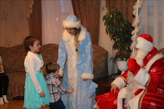 В пятницу, 29 декабря, Дед Мороз с внучкой Снегурочкой посетили дом семейного типа семьи Степанцовых. С ними также приехали начальник отдела образования спорта и туризма Наталья Евтухова и главный специалист этого же отдела Дмитрий Шатликов.
