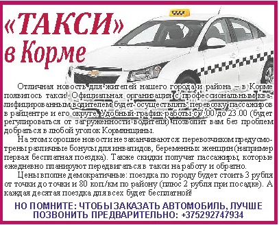 В Корме есть такси