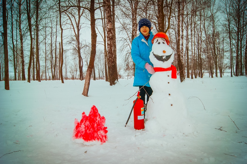 В Корме лепили и фотографировали для конкурса снеговиков — пожарных