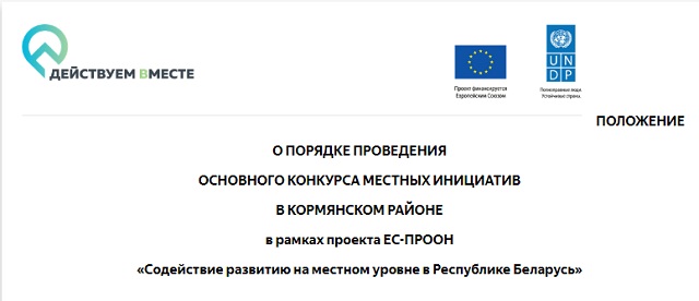 Кормянский районный исполнительный комитет информирует организации и граждан района о проведении Основного Конкурса местных инициатив, осуществляемого в рамках проекта международной технической помощи ЕС-ПРООН «Содействие развитию на местном уровне в Республике Беларусь».