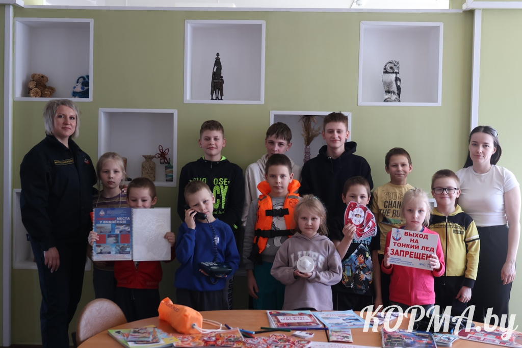 Спасатели Кормянского РОЧС И ОСВОД встретились с ребятами, воспитывающимися в детском социальном приюте в агрогородке Коротьки, чтобы рассказать о важных правилах безопасного поведения в весенний период.