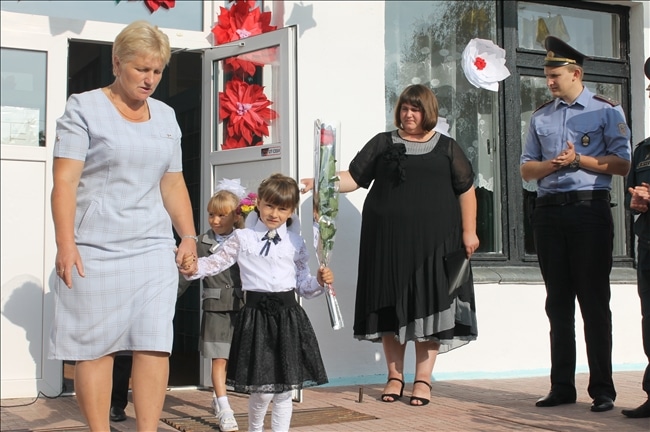 По традиции слово также предоставлялось первоклассникам, трогательно прочитавшим стихи. Прозвучало и ответное приветствие выпускников, для которых нынешний День Знаний – последний в стенах родной школы. Они же вручили малышам книги в подарок от Президента Республики Беларусь.