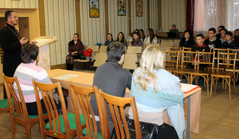 противодействия торговле людьми Кормянского РОВД Сергей Чекалов, медработник наркологического и психиатрического кабинета Людмила Коченкова. Принял участие в мероприятии и настоятель храма Святителя Николая Чудотворца в г.п. Корма иерей Виталий Лехнович. Священник рассказал, как противостоять вовлечению в употребление наркотиков, не попадать в зависимости от них и от других плохих привычек, о том, как находить для себя полезные занятия, чтобы жизнь была заполнена ими, а не пагубными страстями. Сделал акцент на важности хороших семейных отношений и правильном выборе окружения, доверии, взаимной поддержке близких и друзей.