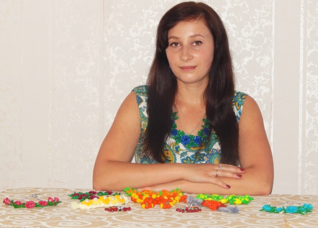 Мастерица вспоминает, как работали над первым изделием: фигурки уже были слеплены, оставалось только «запечь» их в духовке. Было решено эту часть работы доверить мужчине. Когда же браслет достали, оказалось, что он просто сгорел. Как же расстроилась девушка, были слезы, разочарование, досада… Но руки не опустила, напротив, теперь, спустя два года от начала увлечения, она знает все тонкости технического процесса: какая температура необходима для термической обработки, разбирается в качестве глины, умеет ее выбирать. Работы Ирины неоднократно использовались на различных выставках, участвовали в конкурсах и показах, их даже выбрали в качестве сувенира на Дожинках. Пользуются изделия популярностью и у самой хозяйки, и у членов ее семьи, и у друзей. Конечно, первой поклонницей ее творчества является маленькая дочка Мирослава которая с удовольствием носит милые браслетики, супруг Денис попросил смастерить брелок для ключей – постоянное напоминание о любимой, а знакомые покупают бижутерию для себя и в качестве подарков.