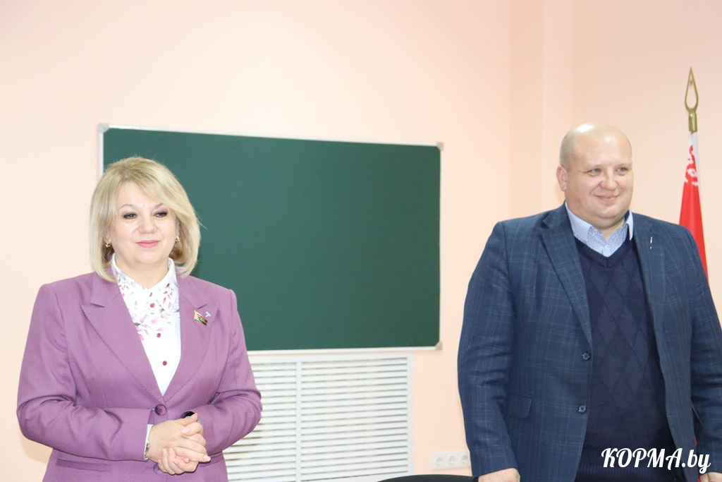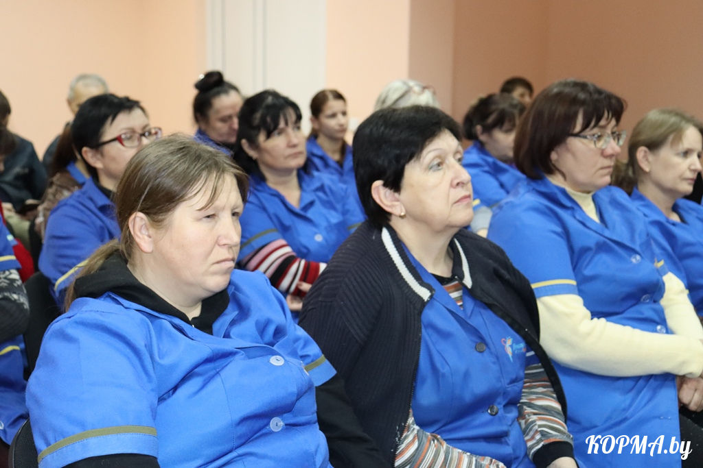 Начальник отдела идеологической работы и по делам молодёжи Элла Фомичёва остановилась на том, что сделано на протяжении Года благоустройства в Корме и районе: замена участков уличного покрытия, установка малых архитектурных форм, ремонт и реконструкция воинских захоронений, увековечение памяти героев, освобождавших Кормянщину, и многое другое. Осуществляется реализация гражданских инициатив, в том числе открытие мурала Н. А. Михайлашева. Жители района участвовали в республиканских, областных и районных субботниках. Немаловажное значение имеет открытие на базе Кормянской ЦРБ отделения дневного пребывания для граждан пожилого возраста и инвалидов. Элла Григорьевна призвала всех не оставаться равнодушными и в преддверии новогодних праздников посетить отделение и подарить частичку тепла и праздничное настроение его постояльцам.
