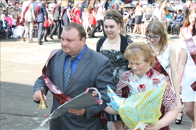 Традиционный вальс, который выпускники исполнили после выхода, вызывал у многих первые слезы умиления. Когда же они, построившись на крыльце, говорили каждый свои слова родителям, учителям, прощаясь с любимой гимназией, то некоторые плакали уже по-настоящему. Но накал трогательных эмоций вызывал проход ребят по кругу двора, шествие возглавляли классные руководители они давали последний школьный звонок для своих учеников. А затем выпускники так же прошли вместе со своими родителями. Это никого не оставило равнодушным.