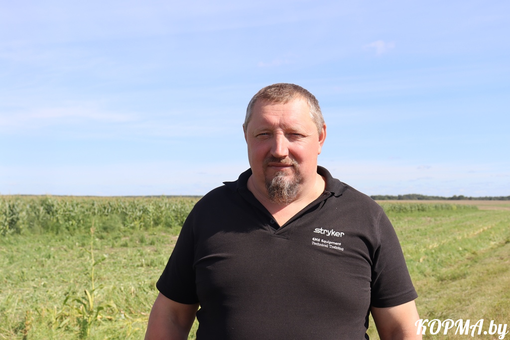 За штурвалом кормоуборочного комбайна сегодня трудится Фёдор Захаренко. На отвозке задействованы Михаил Демиденко и Владимир Бурдоленко. И каждый из них опытный, ответственный и старательный механизатор. Это отмечает и руководитель КСУП «Лепешинский» Виктор Лашкевич. Кроме того, Виктор Владимирович поделился, что кукуруза в этом году гораздо лучше, чем в предыдущем, так что виды на кормозаготовку весьма оптимистичные. Об этом же говорят и механизаторы: