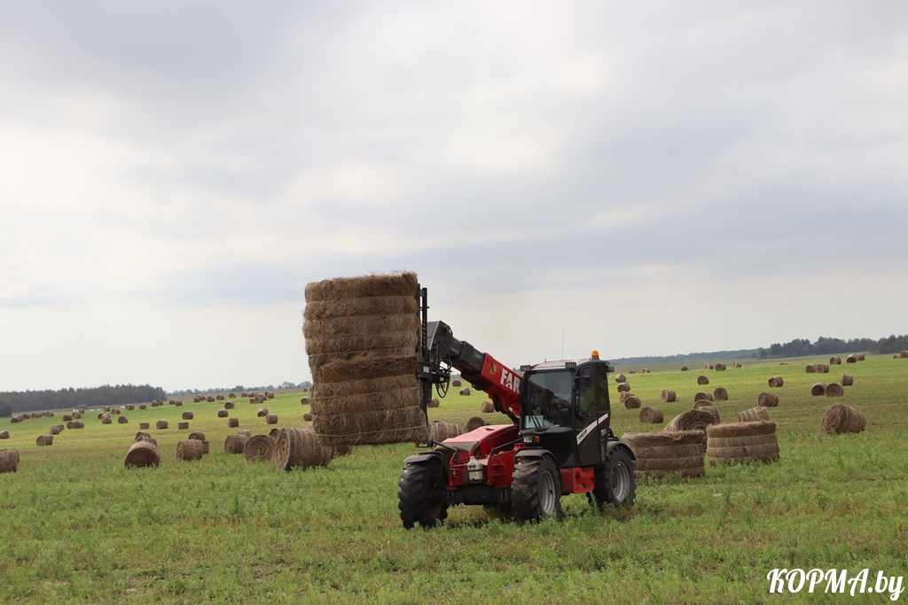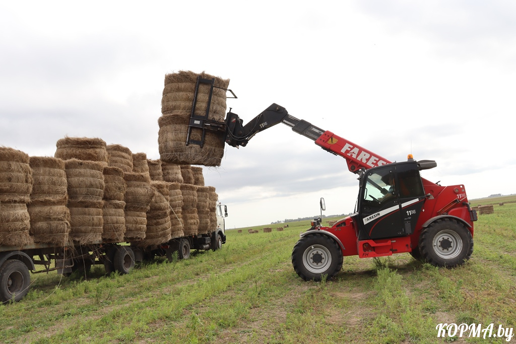 Тракторист Олег Дралов и водитель Михаил Царанков уже не один год трудятся на льнозаводе. В день делают от 3 до 4 рейсов на тракторе и 4-5 на МАЗе – в зависимости от расстояния до поля. Трактор за один рейс отвозит 40 рулонов, а на платформу грузового автомобиля их становится сразу по 55.