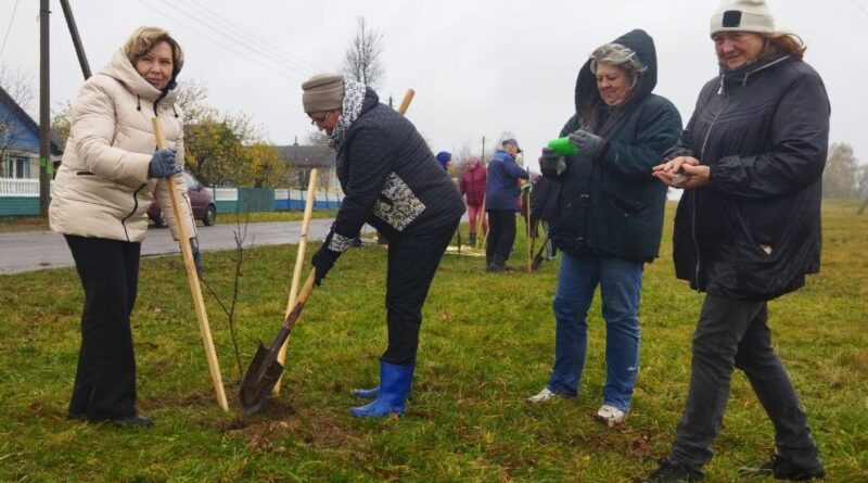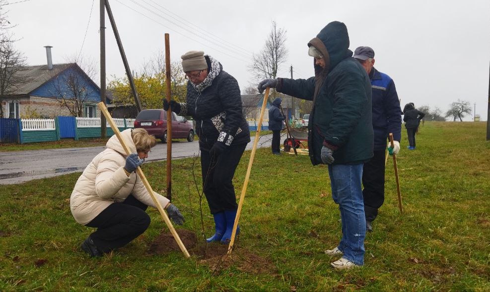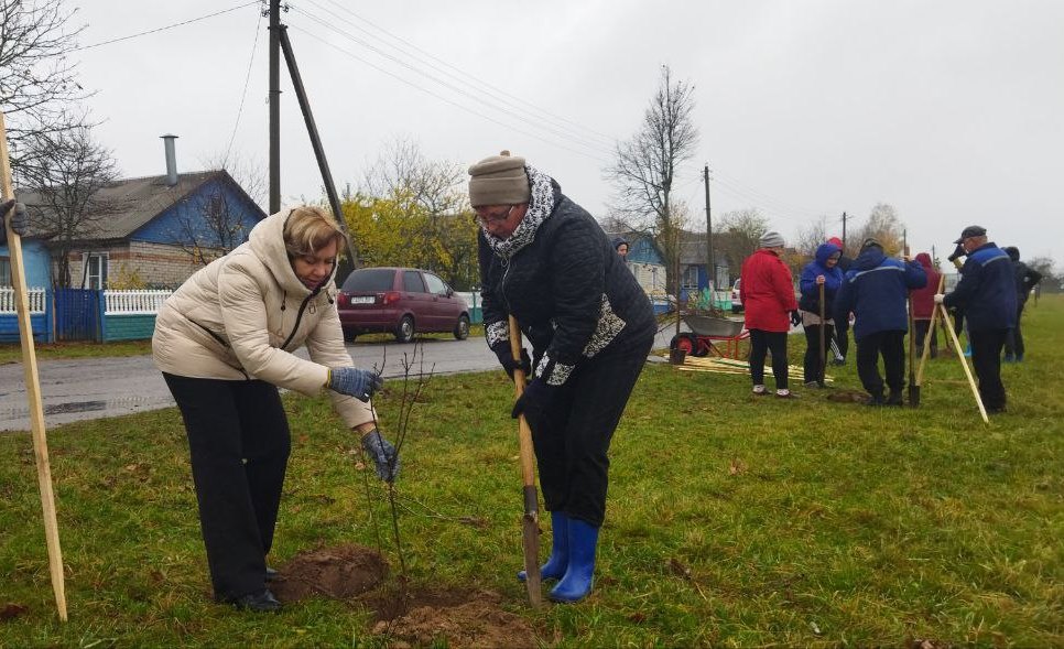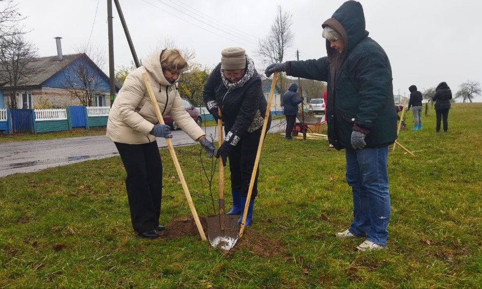 Председатель Кормянского районного Совета депутатов Татьяна Шехтер вместе с депутатами районного и Барсуковского Советов депутатов и неравнодушными гражданами во время республиканского субботника высаживали деревья в агрогородке Барсуки.