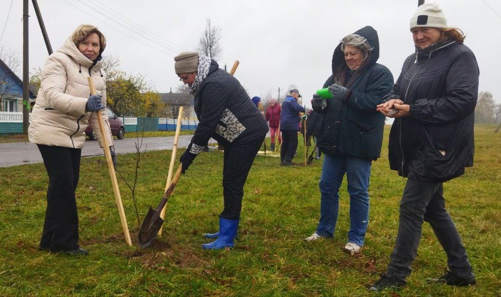 Председатель Кормянского районного Совета депутатов Татьяна Шехтер вместе с депутатами районного и Барсуковского Советов депутатов и неравнодушными гражданами во время республиканского субботника высаживали деревья в агрогородке Барсуки.