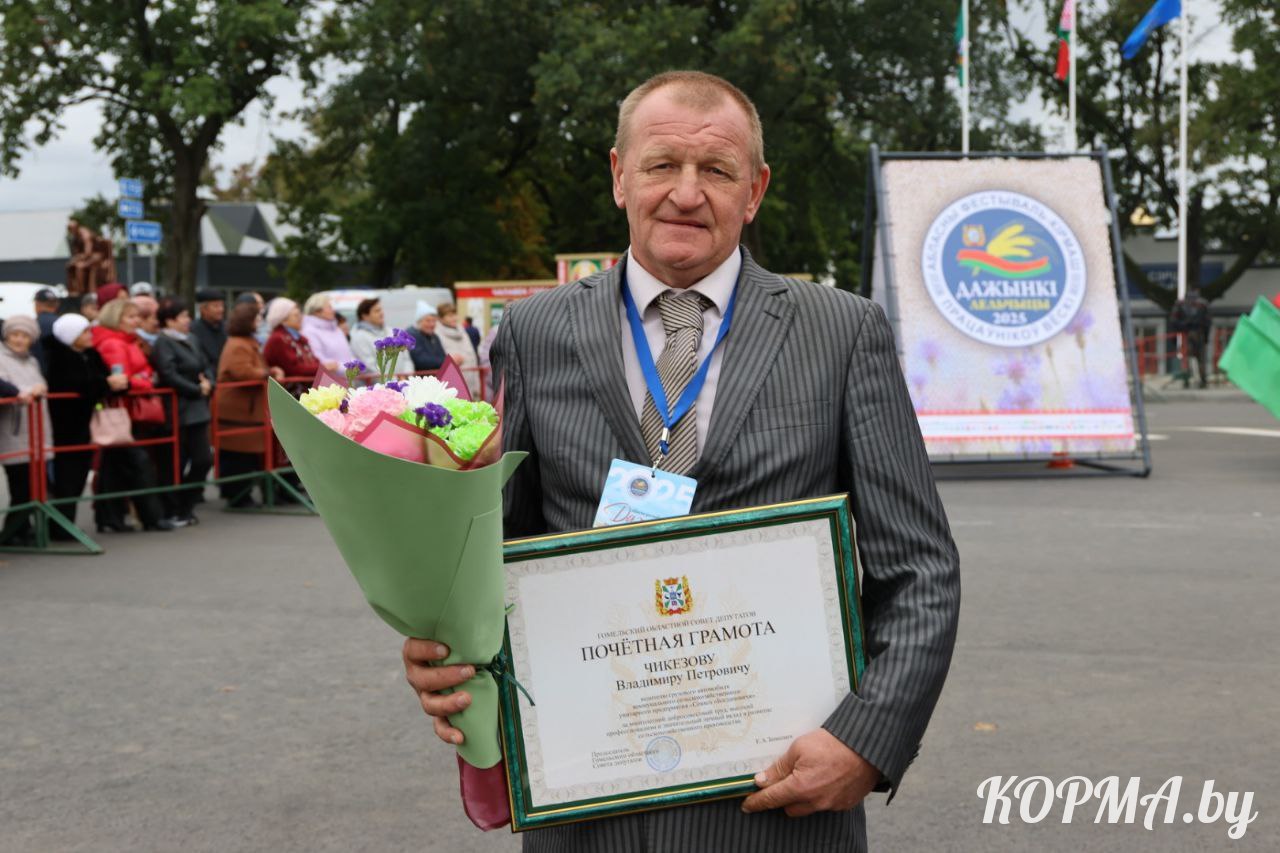 Почётной грамотой Гомельского областного Совета депутатов за многолетний добросовестный труд, высокий профессионализм и значительный личный вклад в развитие сельскохозяйственного производства награждён водитель КСУП «Совхоз «Богдановичи» Владимир ЧИКЕЗОВ.