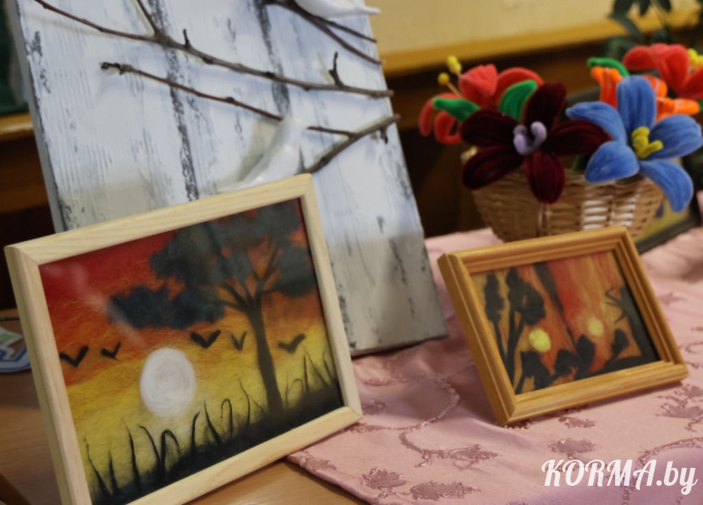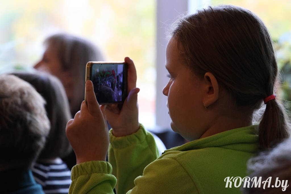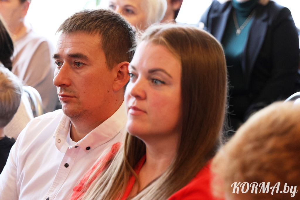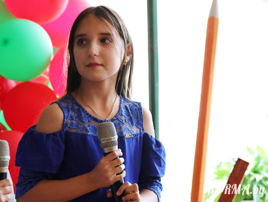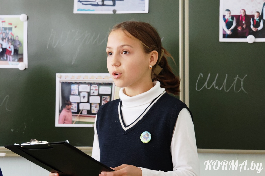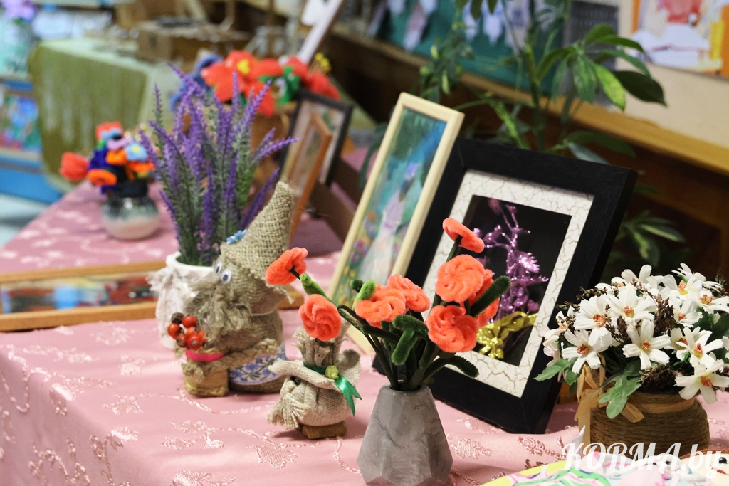 Уже на входе в учреждение образования для гостей учащиеся и педагоги подготовили разнообразные выставки. По традиции ребята, наряженные в белорусские национальные костюмы, встречали всех, кто пришёл на праздник, ароматным караваем.