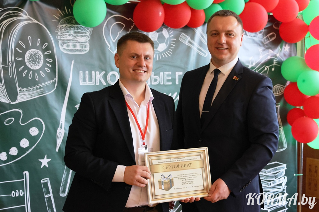 Также Иван Игнатенко вручил руководителю школы сертификат на приобретение холодильного оборудования для пищеблока учреждения образования.