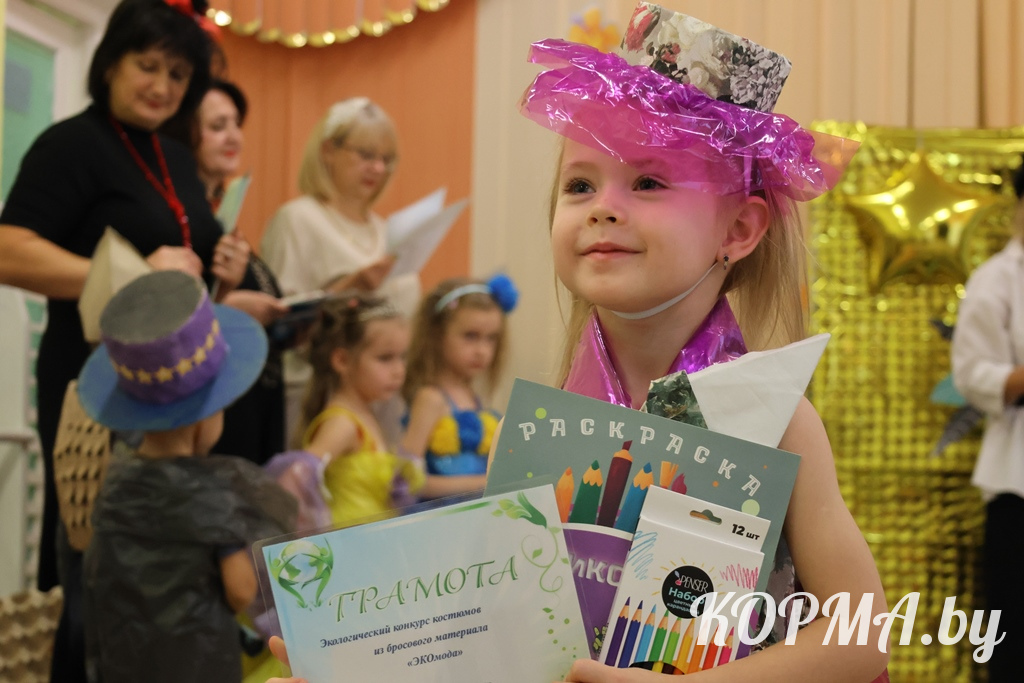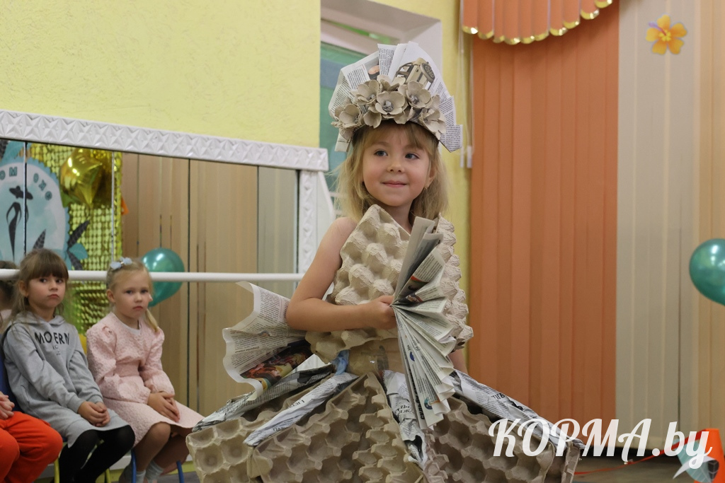 В преддверии Дня матери яркое экологическое шоу «Модный приговор» прошло в детском саду № 6 городского посёлка Корма. Малыши презентовали оригинальные наряды, сделанные совместно с мамами из подручных средств.