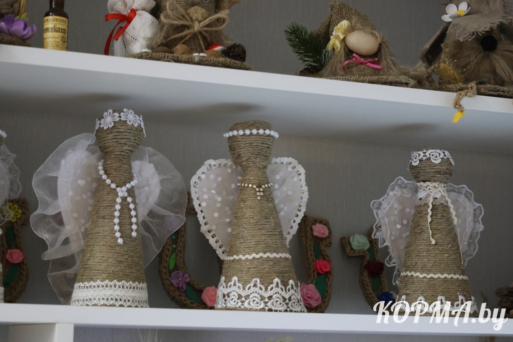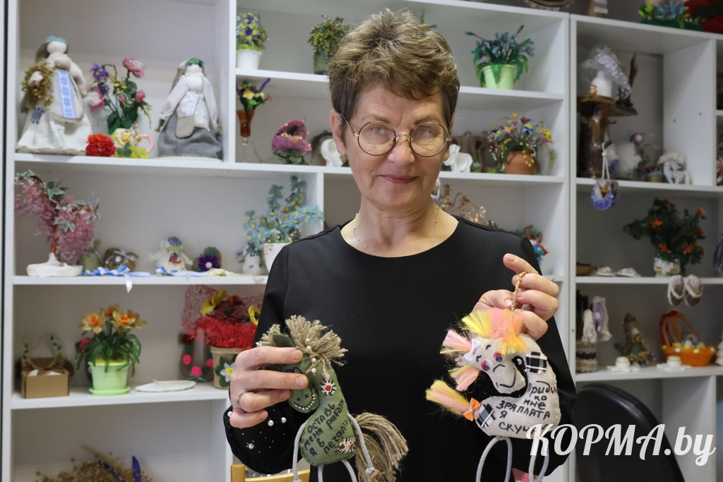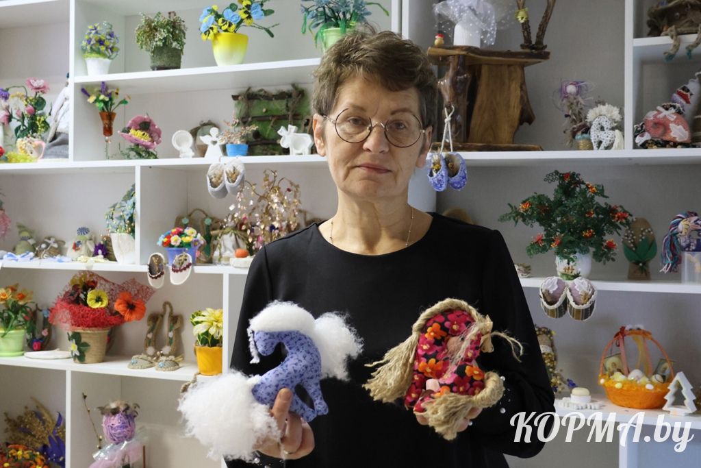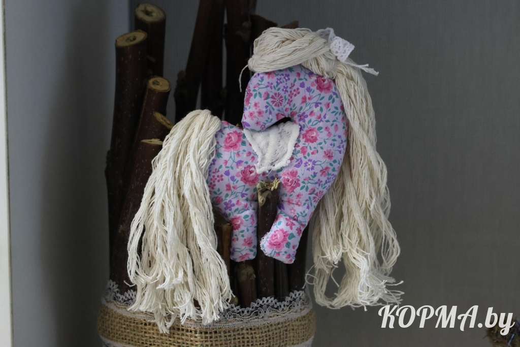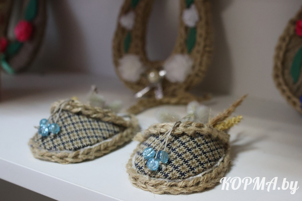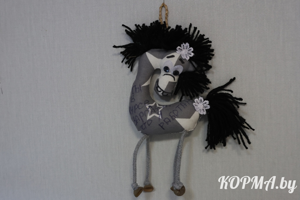 Атмосфера здесь, конечно, волшебная. Что ни изделие, то уникальный экспонат. Фигурки из различных материалов, выполненных в самых различных техниках, о которых, возможно, некоторые из нас даже и не слышали. Всё такое оригинальное, что, наверное, могло бы украсить любой интерьер и привнести нотку уюта в каждый дом. А что же больше всего привлекло наше внимание? Забавные лошадки с различными весёлыми надписями, которые с таким трепетом и любовью шьёт Эдита Ивановна. Почему именно лошади?