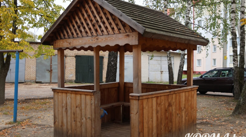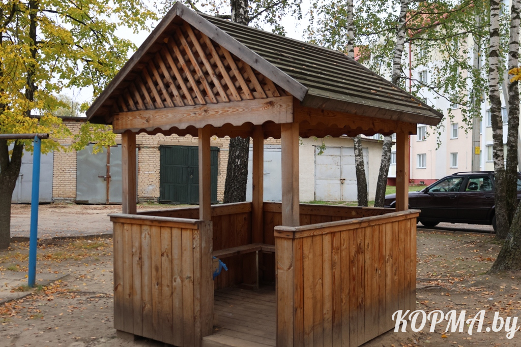 Вблизи дома № 35 по улице Ильющенко в г. п. Корма расположилась беседка. Место пользуется популярностью как у молодёжи, так и у местных жителей. Вот только после вечерних посиделок остаются неприглядные следы в виде надписей на деревянных перилах.
