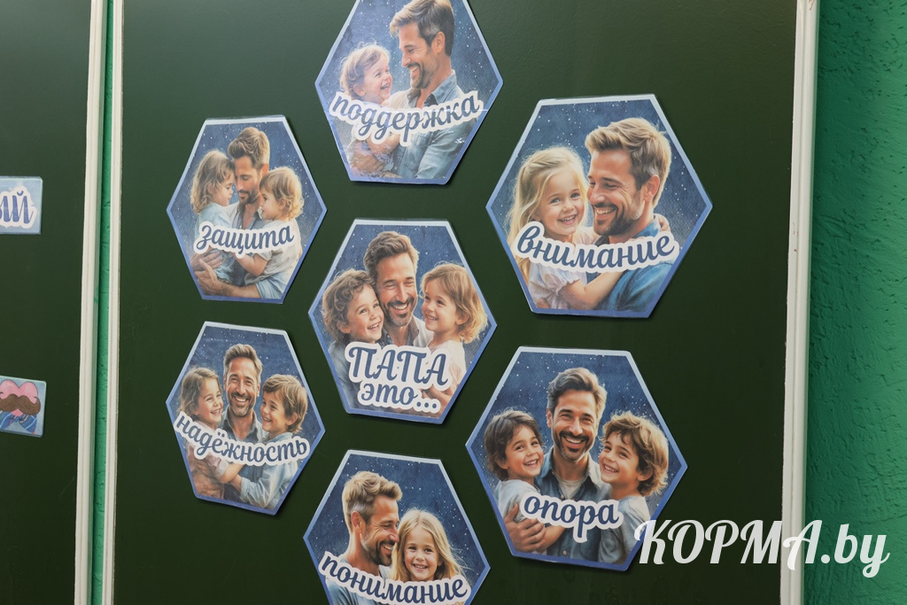 Ребята вспомнили историю праздника, обсудили о роли отцовства в жизни ребёнка. Каждый из них рассказал, что значит дл него папа. Затем составили коллективный портрет папы. Главная фигура получилась сильной, доброй, заботливой и мужественной. По мнению малышей, таким и должен быть идеальный папа Кормянщины.