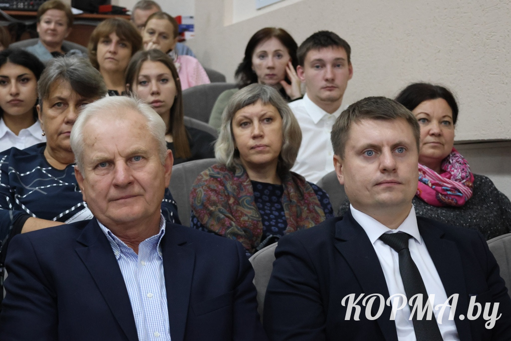 Иван Игнатенко, начальник отдела образования Кормянского райисполкома поздравил коллег с праздником, поблагодарив за мудрость, самоотдачу, профессионализм. В своем выступлении Иван Владимирович пожелал благодарных учеников, высоких побед в творческих конкурсах, спортивных соревнований, а также в учебных Олимпиадах.