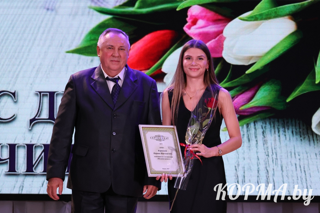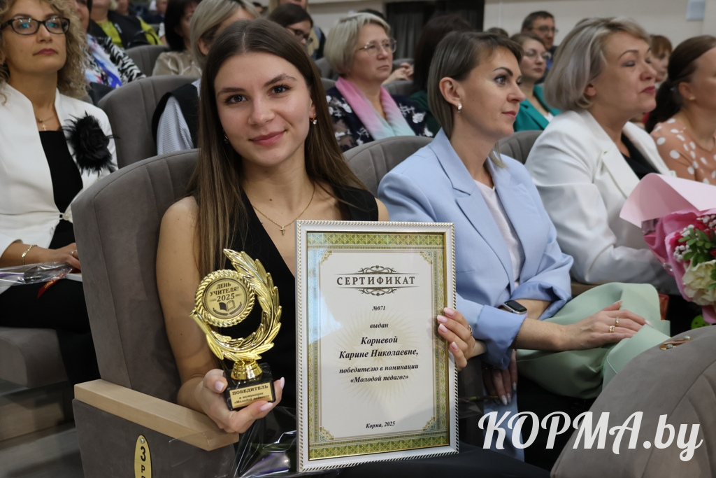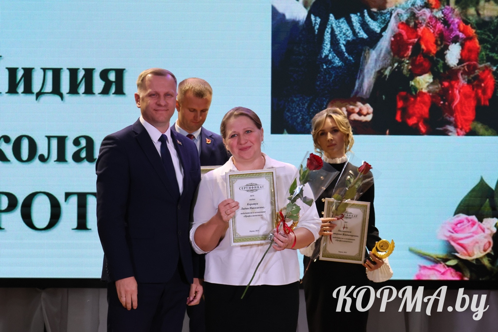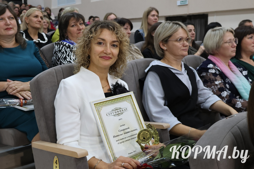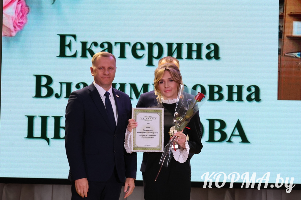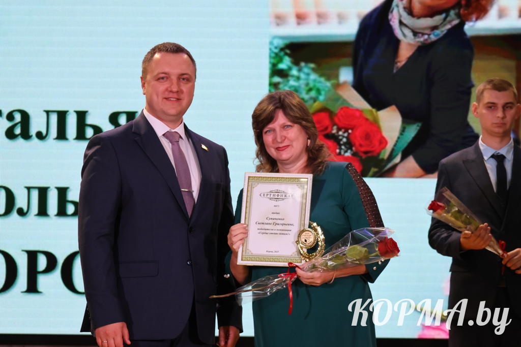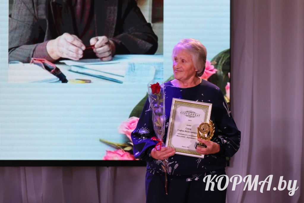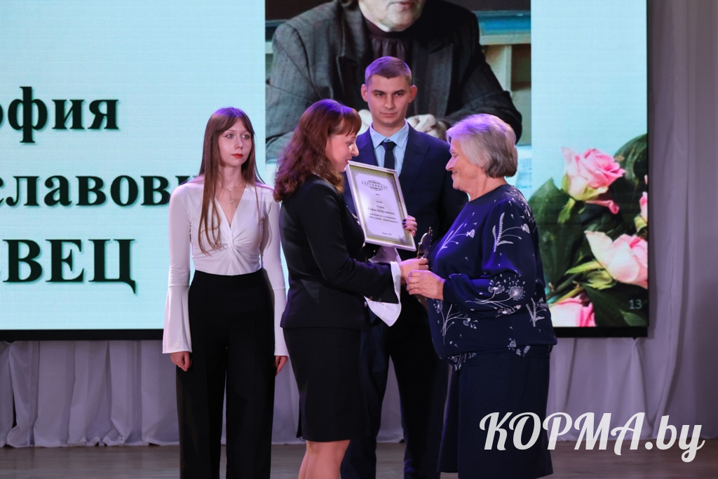 В номинации «Моя судьба — Кормянщина» сертификатом и кубком награждена СЕВЕЦ София Болеславовна, учитель начальных классов государственного учреждения образования «Лужковская базовая школа Кормянского района». Заслуженную награду вручила заместитель председателя Кормянского районного исполнительного комитета по строительству Оксана Степанькова.
