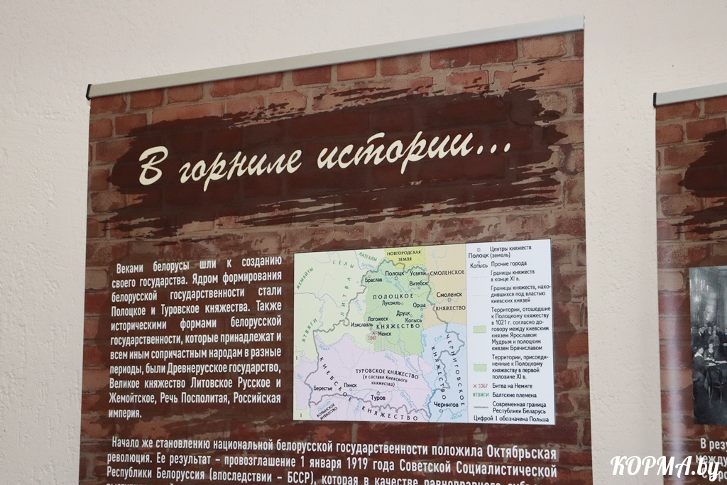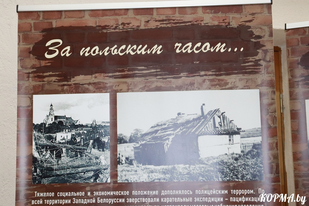 Когда Андрей Викторович рассказывал об истории Беларуси, начиная от Рижского мирного договора до объединения земель в 1939 году. Посетители серьёзно и сосредоточенно слушали о том, что пришлось пережить белорусам, оставшимся на землях под чужой властью, о справедливости освободительного похода Красной армии, не только избавившего их от польского гнёта, но и отодвинувшего почти на два года угрозу уже начавшейся на тот момент Второй мировой войны. И насколько же изменился общий настрой, когда обратились к стендам, демонстрирующим достижения суверенной Беларуси, в том числе и Кормянского района, в науке и культуре, спорте и образовании, экономике и сельском хозяйстве.