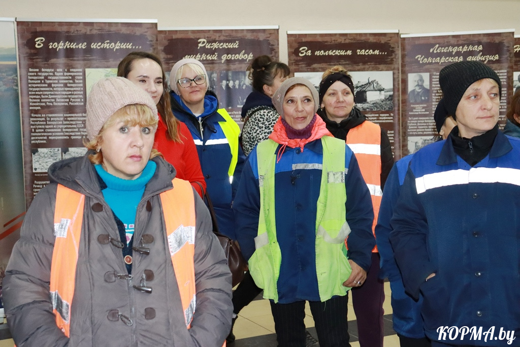 В числе первых сегодня экспозицию увидели работники КЖПУП «Корма». С неподдельной увлечённостью они рассматривали представленные экспонаты и фотоматериалы, а также слушали экскурсовода – научного сотрудника районного мемориального музея имени П.Н. Лепешинского Андрея Кочубинского.