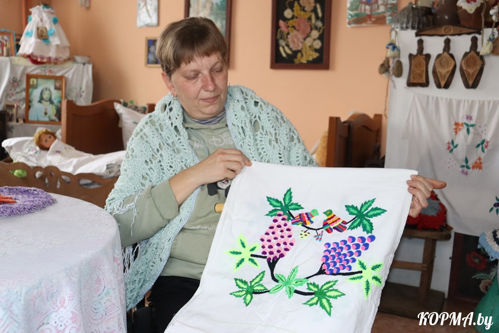 Мастерица из агрогородка Барсуки Елена Бунделева трудится в школе сторожем. А свободное от работы время посвящает творчеству – вышивке и вязанию.