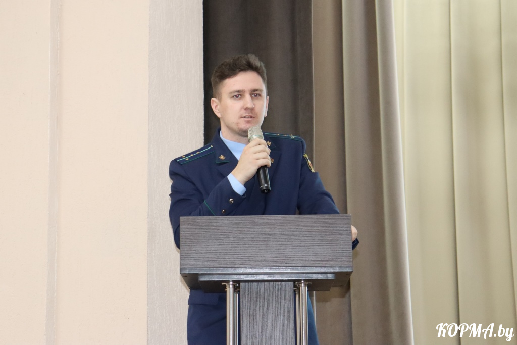 Заместитель прокурора Кормянского района Никита Попов в своём выступлении сделал акцент на профилактике экстремизма. Так, например, существует перечень интернет-ресурсов, признанных экстремистскими. Если подписаться на такой канал или поставить лайк, можно оказаться на профилактическом учёте. К тому же конфискуется орудие преступления – в данном случае это телефон, компьютер или иные гаджеты, кроме того, родители привлекаются к административной ответственности. Он отметил, что много полезной информации публикуется на канале районной газеты KORMA.BY. Если следить за новостями, можно узнать о том, как защитить себя от мошеннических схем, не быть втянутыми в наркоторговлю и иные противоправные действия. Отдельно Никита Викторович остановился на расследовании дела о геноциде белорусского народа в годы Великой Отечественной войны и недопущении распространения нацистской символики.