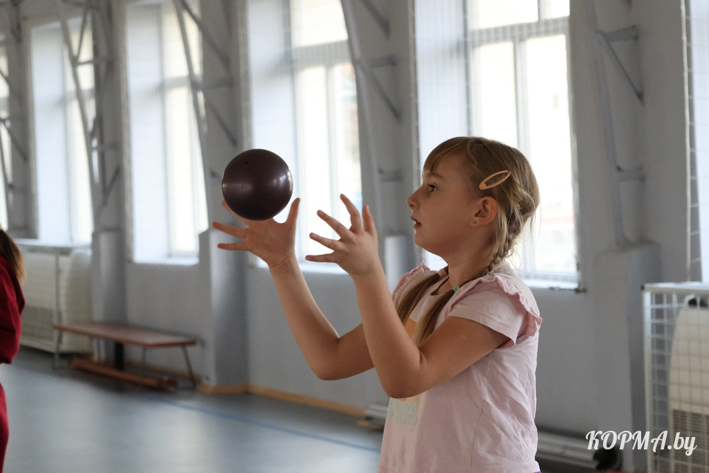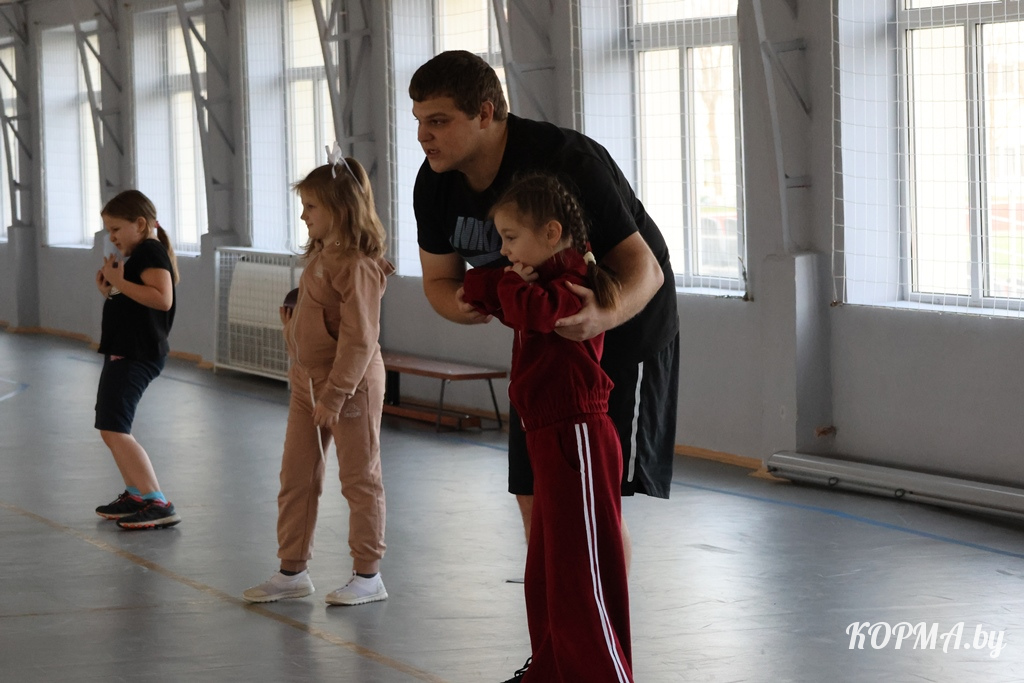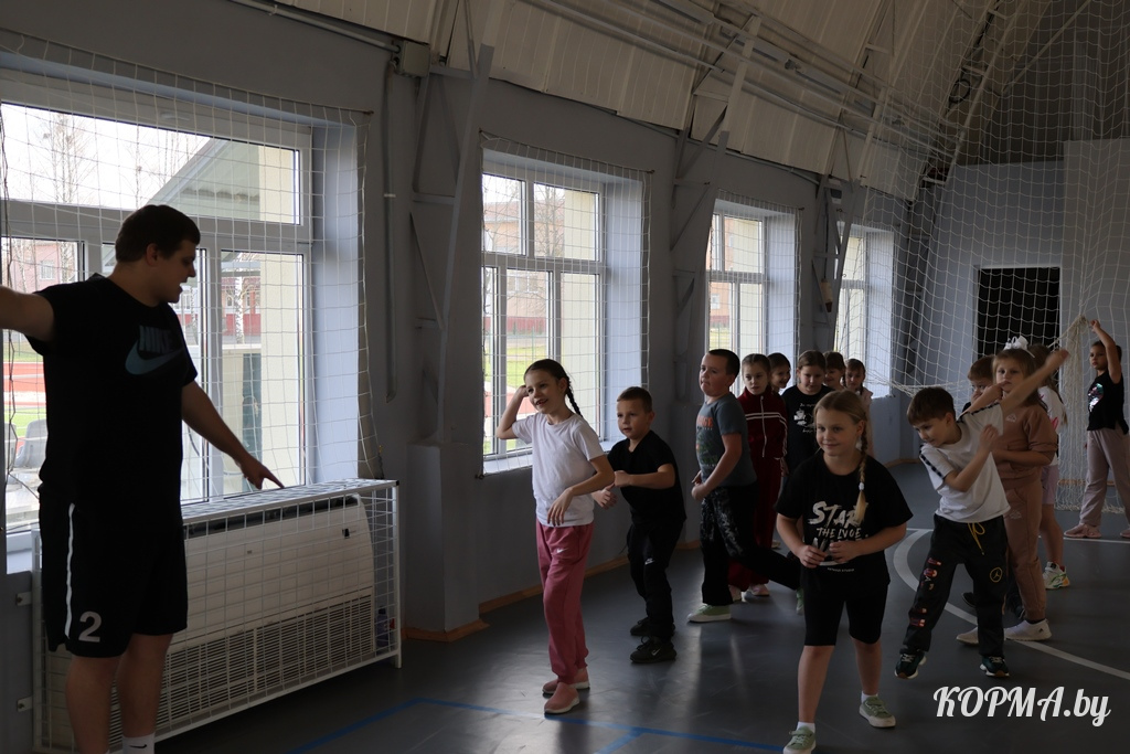 В спортивном зале царит спортивный шум – то смех, то топот быстрых ног. Так начинается тренировка младшей группы по лёгкой атлетике, где занимается около десятка ребят. Руководит занятиями тренер-преподаватель Артём Данилович, который уверен: спорт должен быть не только полезным, но и интересным.