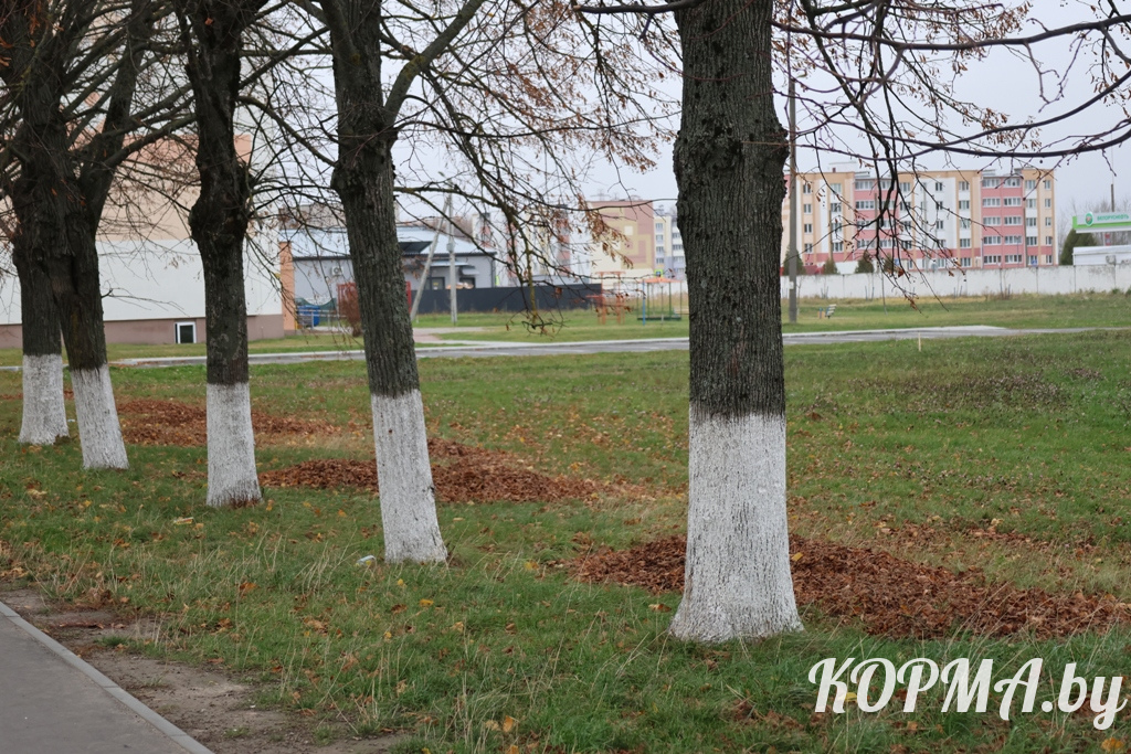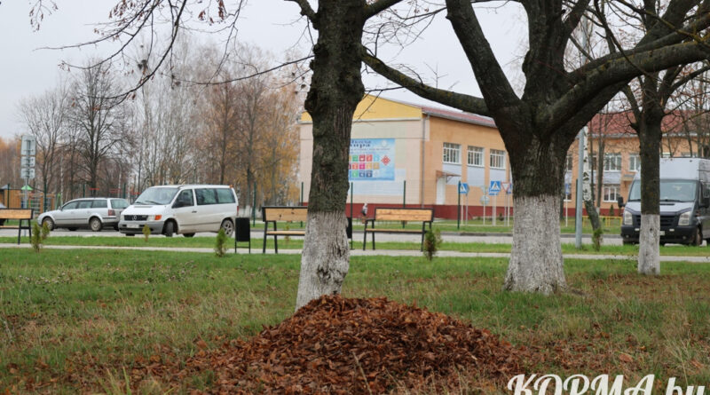 По улице Спортивной, вблизи центрального стадиона «Сож», в г. п. Корма забыли убрать за собой некогда оставленные насыпи листвы.