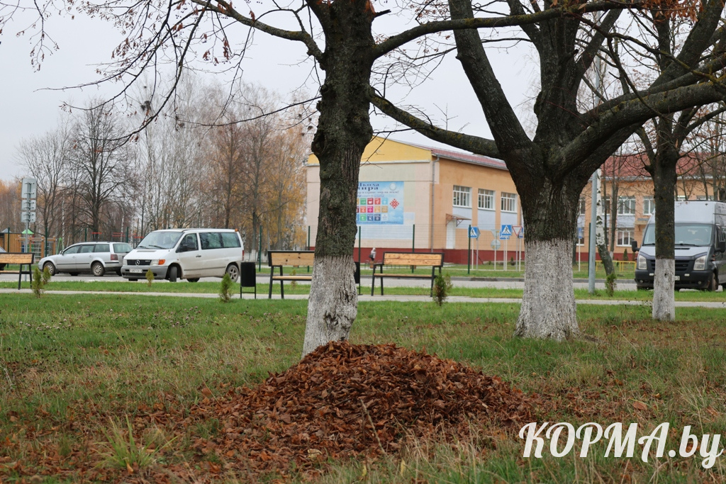 По улице Спортивной, вблизи центрального стадиона «Сож», в г. п. Корма забыли убрать за собой некогда оставленные насыпи листвы.
