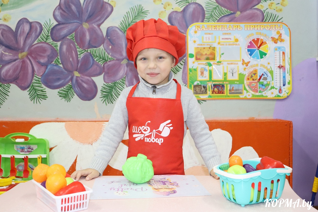 Першым наведваем дзіцячы садок, дзе якраз праходзіў дзень здаровага харчавання. Дзеці даведаліся шмат новага і карыснага аб тых прадуктах, якія трапляюць на стол, паспрабавалі сябе ў ролі кухараў і кулінараў, а таксама пагулялі ў вясёлыя гульні, у тым ліку і з любімымі цацкамі.