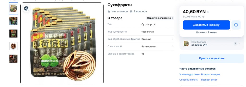 На одном из маркетплейсов можно найти в продаже данные орехи со вкусом мяты. Причем продается он в категории «чернослив». А в описании акцент сделан на эффекте мяты, освежающем дыхание.
