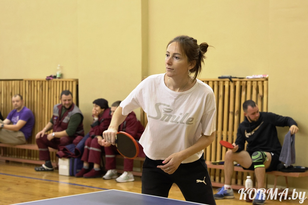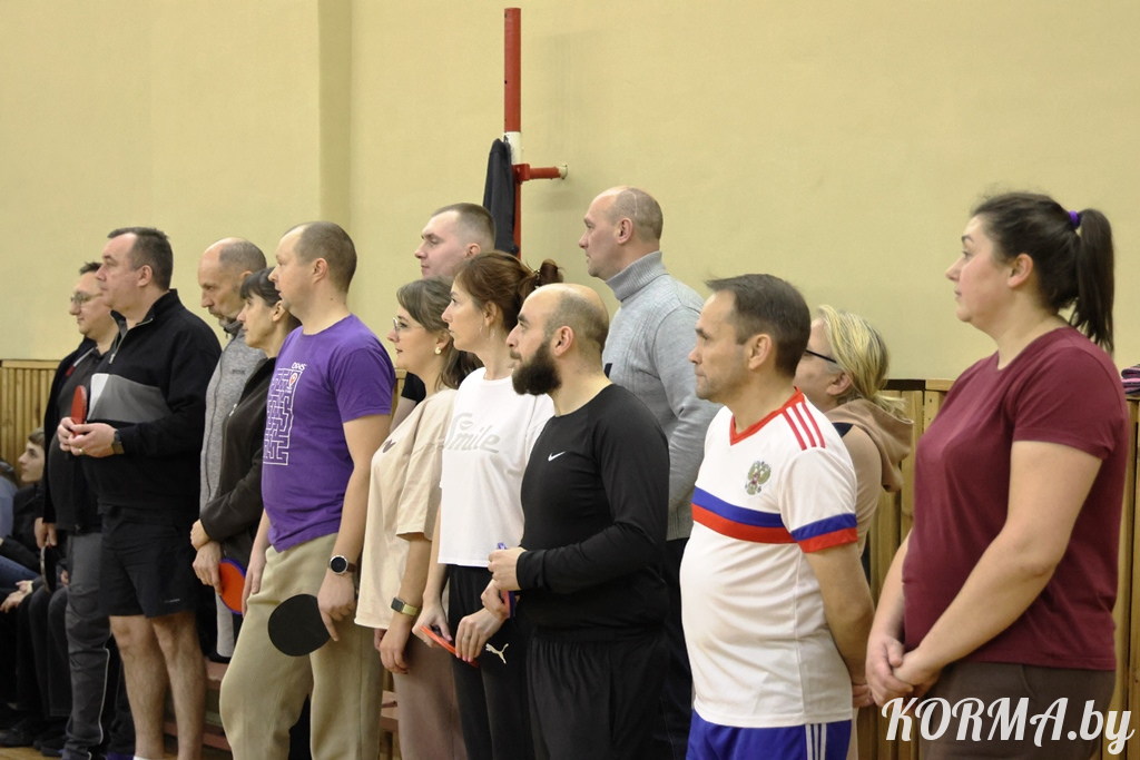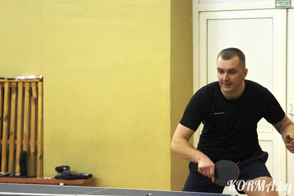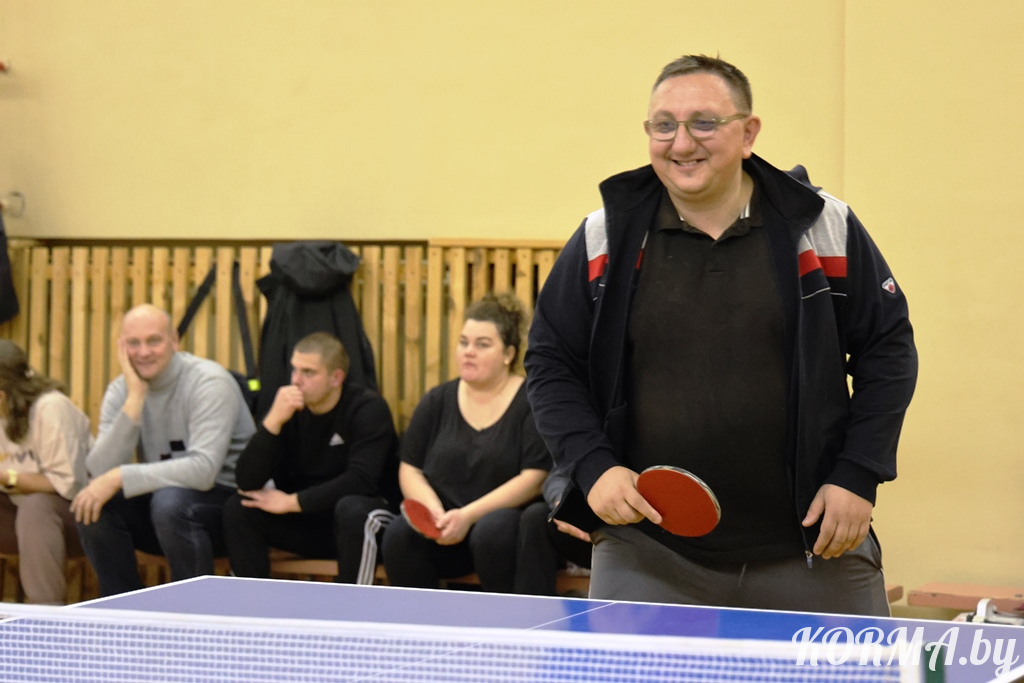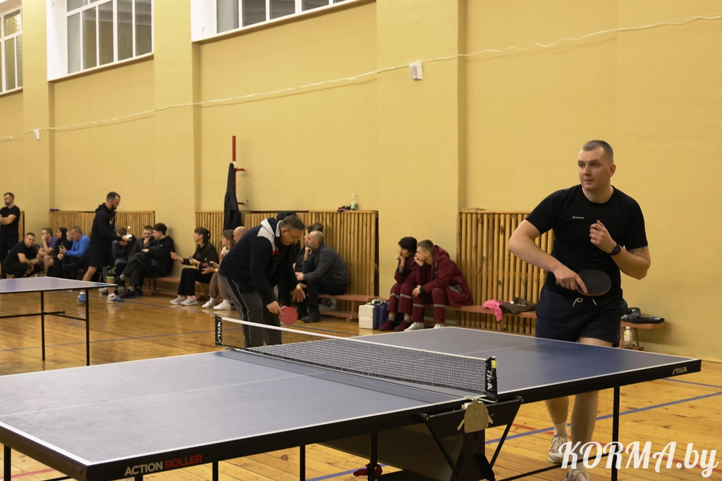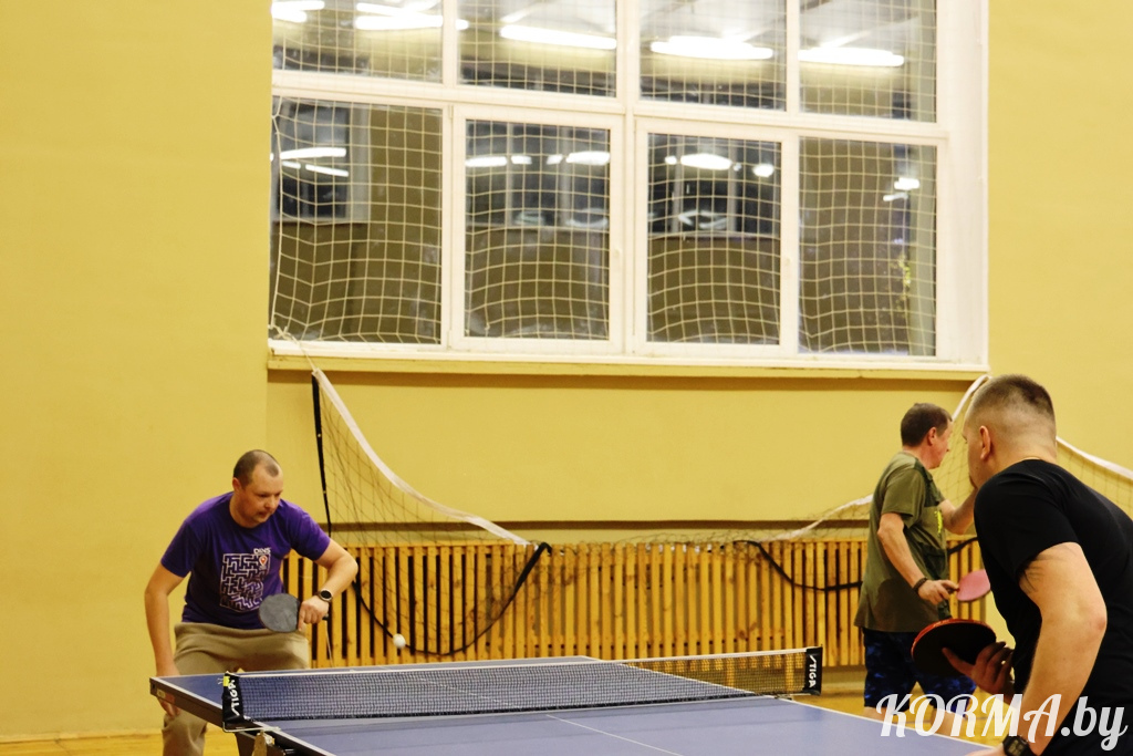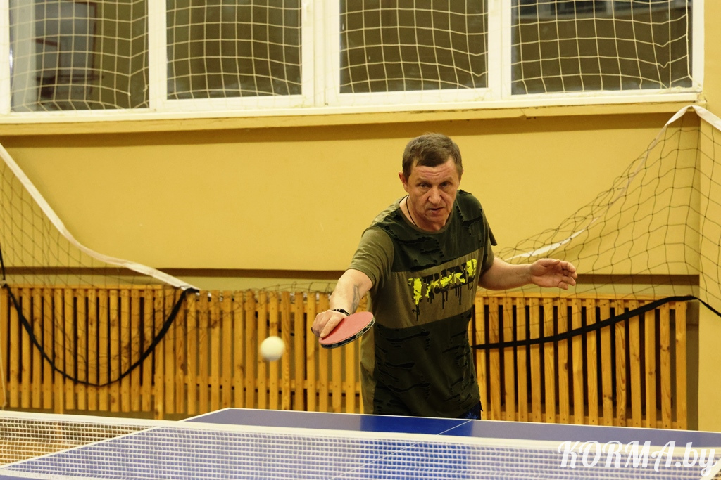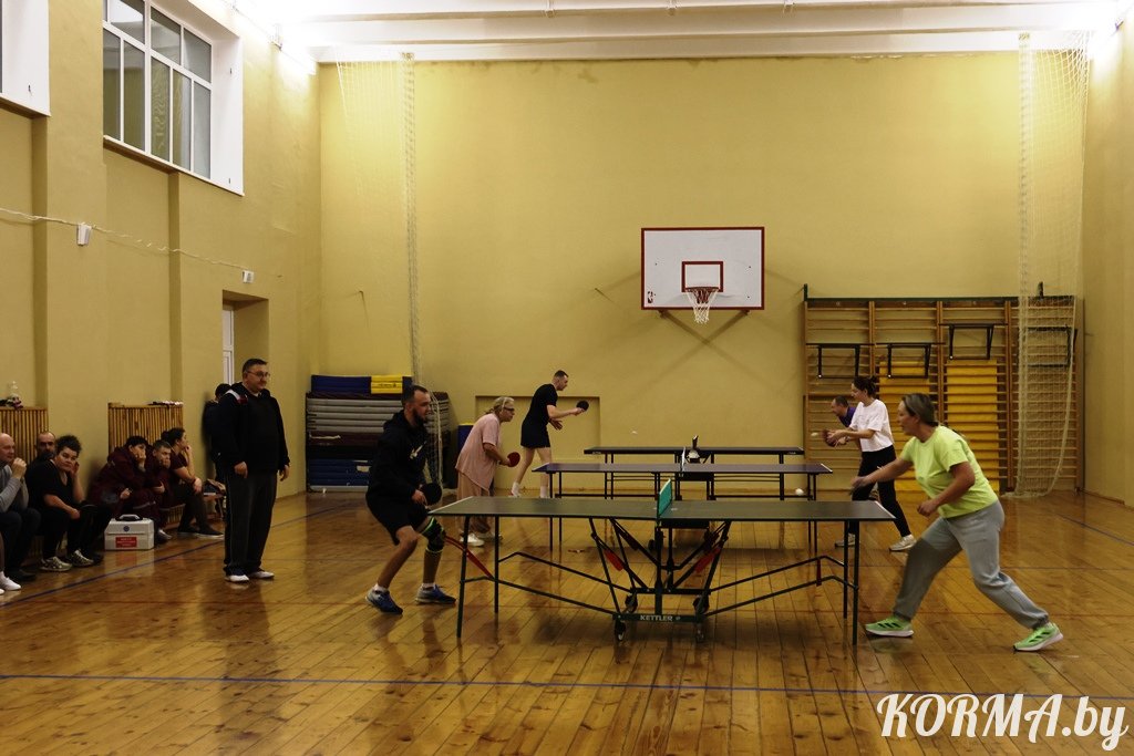 В настольном теннисе соревнуются восемь команд: детско-юношеской спортивной школы, КЖПУП «Корма», Кормянской центральной районной больницы, отдела культуры, Коротьковской средней школы имени П.П. Качуевского, средней школы № 1 г. п. Корма, Коротьковского сельского Совета, Кормянского РОЧС.