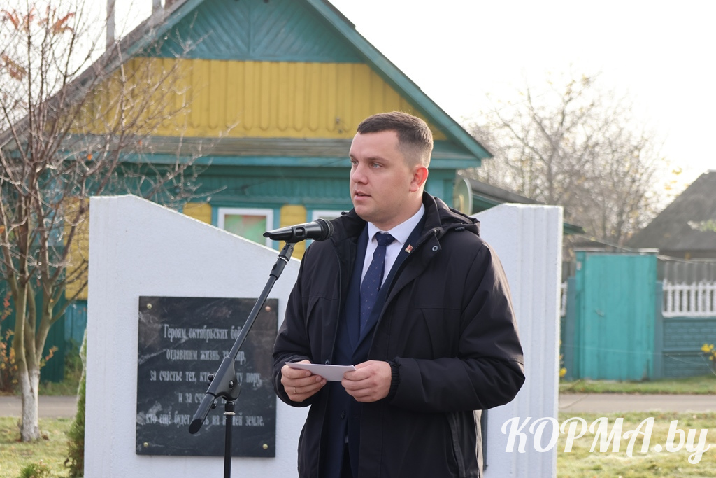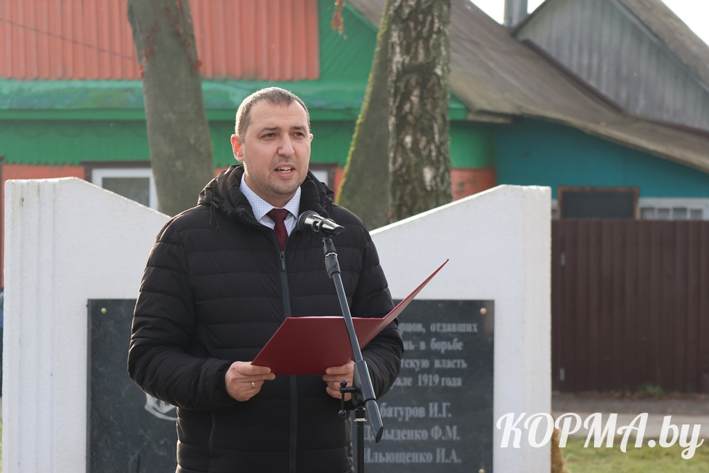 От лица районной коммунистической партии с праздничным днём поздравил Евгений Синдеев. Председатель Кормянского районного отделения Коммунистической партии Беларуси отметил, что День Октябрьской революции изменил жизнь поколений, дав людям равные возможности для саморазвития и самореализации, для созидательного и плодотворного труда, образования, повышения собственного благосостояния и процветания страны. Он пожелал всем здоровья, любви к Родине, мира, добра и счастья.