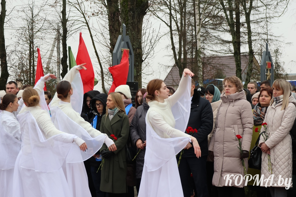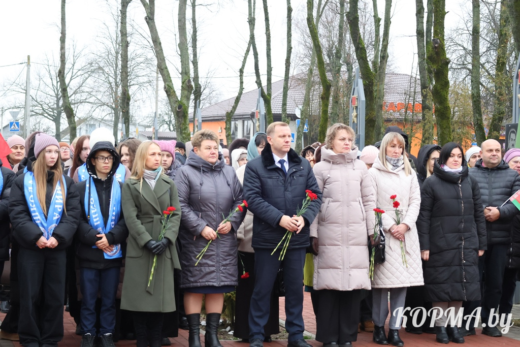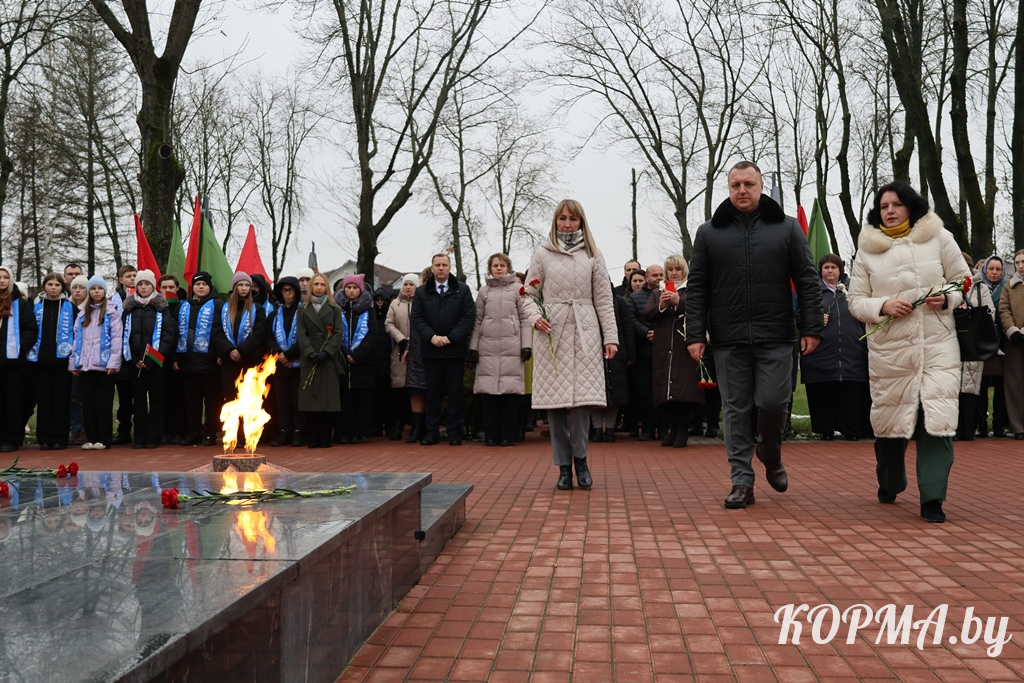 – Сегодня великая дата, вписанная золотыми буквами в историю Кормянского района. За годы оккупации немецко-фашистская армия нанесла колоссальный ущерб для жителям Кормянщины. С августа 1941 года населённые пункты района были переполнены горем, болью и отчаянием. В период Великой Отечественной войны около 30 деревень были навсегда стёрты с карты района. Тысячи жителей расстреляны и зверски сожжены фашистами, около полутора тысяч угнано в рабство – Германию.