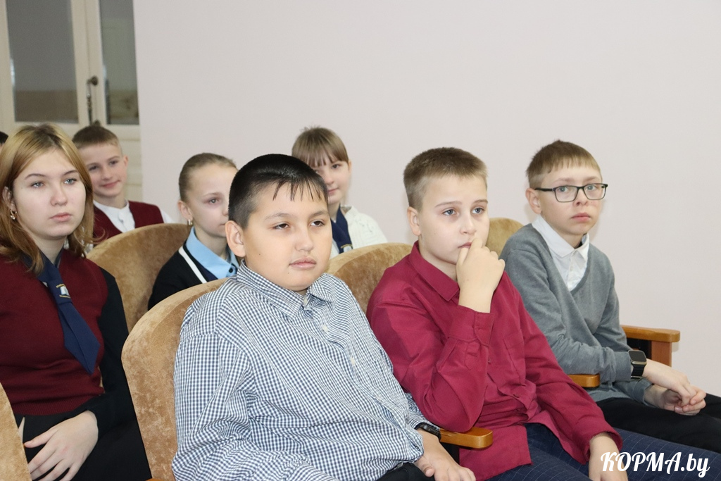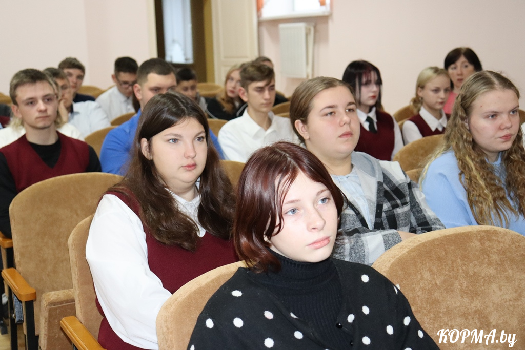 Первой к ребятам обратилась председатель Кормянского районного Совета ветеранов Екатерина Быковская. Она рассказала о том, какой ценой был отвоёван каждый метр родной земли, где начинался штурм вражеских позиций, какие памятные места есть в агрогородке Литвиновичи и поблизости от него. Екатерина Михайловна призвала учащихся посетить священные места, снова побывать в музее, вдумчиво ознакомиться с экспозицией, посвящённой Великой Отечественной войне. Поделилась и эпизодом из жизни своей мамы, которая в военные годы была подростком.