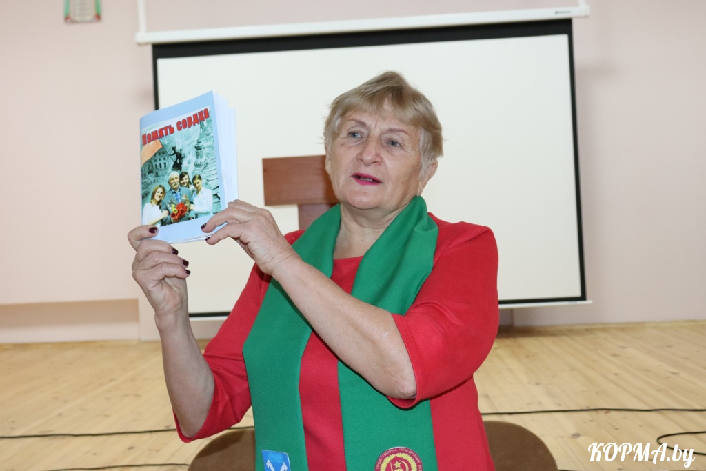 Страшную правду о войне, записанную по воспоминаниям очевидцев и представленную в книге «Память сердца» донесла до школьников активист ветеранской организации Людмила Глаздовская. Она упомянула лишь несколько фактов: как гитлеровцы расстреляли девятимесячного младенца за то, что расплакался в колыбели, когда они грабили дом; как бросили малыша в колодец, вырвав его из рук матери… А сколько таких зверств учинили захватчики в районе, в Гомельской области, по всей стране. И потому сейчас важно помнить о тех, кто пал невинной жертвой фашизма, передавать знания об этом и память новым поколениям. Людмила Петровна посоветовала учащимся взять в библиотеке книгу «Память сердца», прочитать воспоминания земляков, узнать о том, что происходило в годы войны на их малой родине.