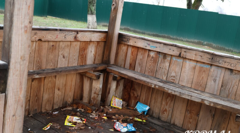 Но вот закончились тёплые денёчки, и молодёжь уже не обитает на привычном месте – прохладно. А вот мусор, оставшийся после их совместного времяпрепровождения, остался и, похоже, никого не беспокоит, хотя прилегающая к этим беседкам территория вполне себе убрана: урны не переполнены, листва собрана. Так, может, ответственному за эту территорию стоило бы заглянуть и в беседки, чтобы навести и там порядок?