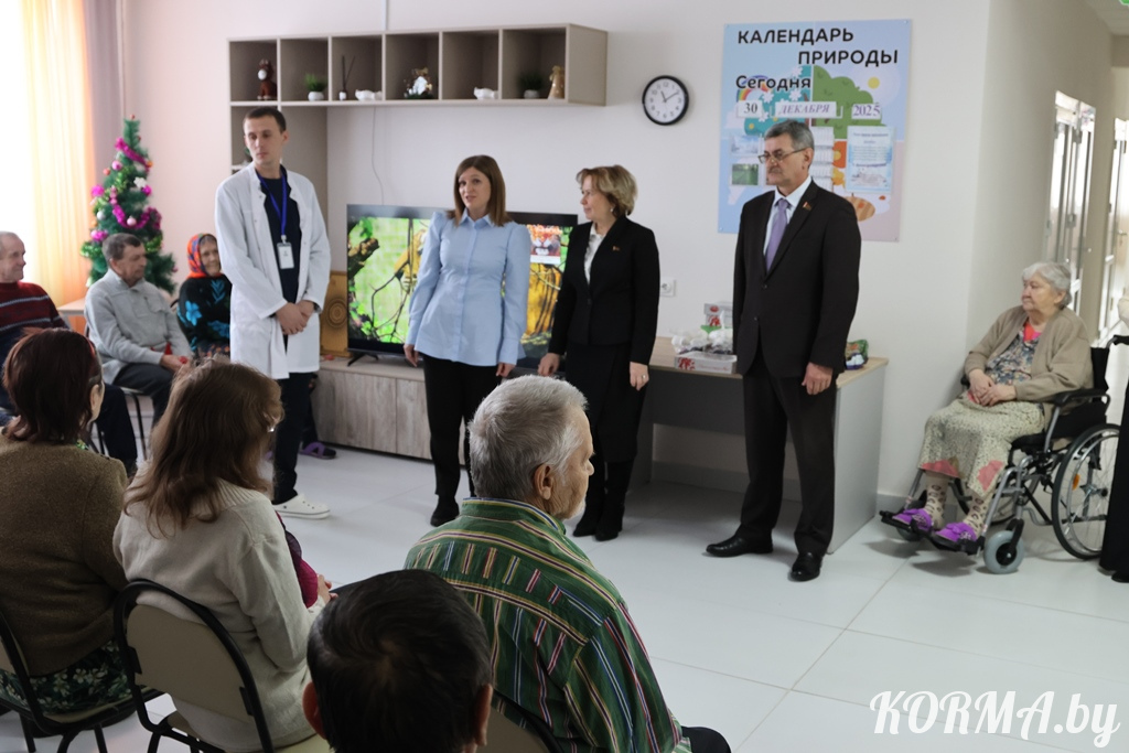 Приближается самый волшебный праздник года. И не только каждый ребёнок ждёт чуда, но и взрослые, особенно те, кто лишён семейного уюта и тепла. В рамках республиканской благотворительной акции «От всей души» постояльцев отделения круглосуточного пребывания для пожилых граждан и инвалидов, который распахнул свои двери 1 октября 2025 года в г. п. Корма, посетили депутат Палаты представителей Национального собрания Республики Беларусь и активисты Кормянской районной организации РОО «Патриоты Беларуси». Участие в мероприятии принимала председатель Кормянского районного Совета депутатов Татьяна Шехтер.