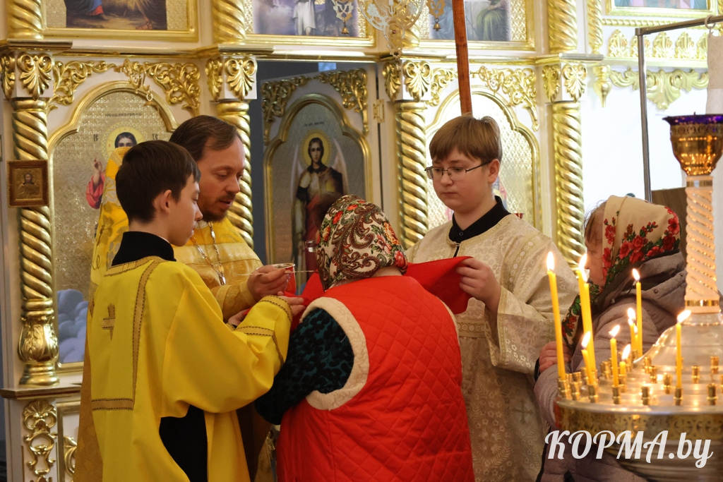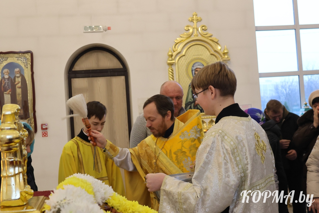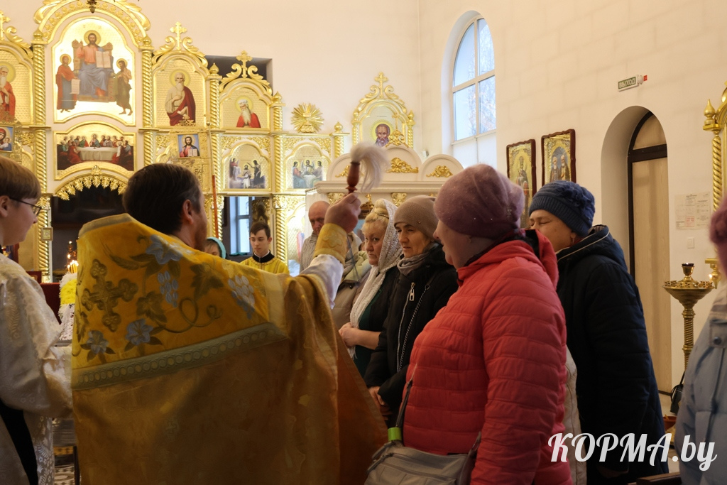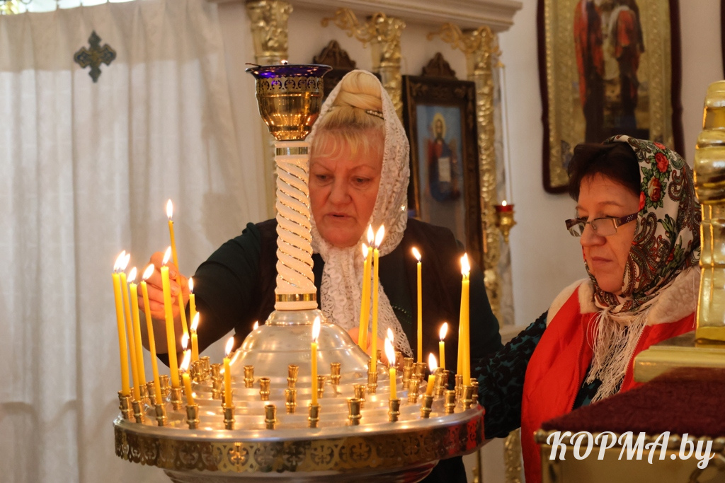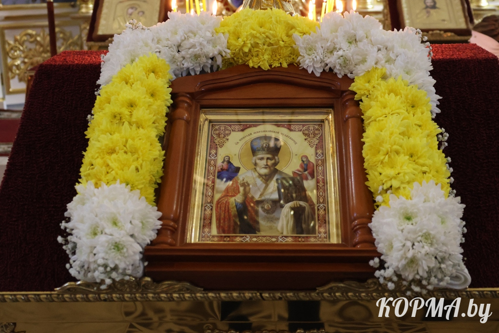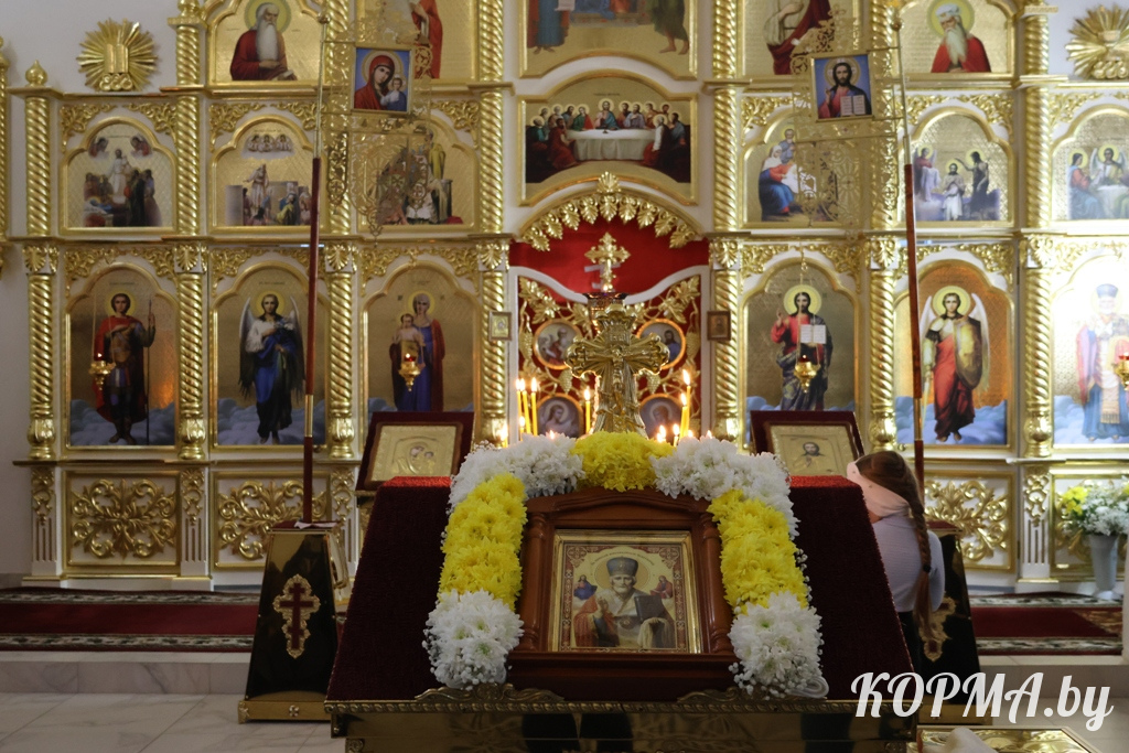 В православном храме г. п. Корма верующие собрались на литургию и праздничный молебен, чтобы почтить память святого, поблагодарить.