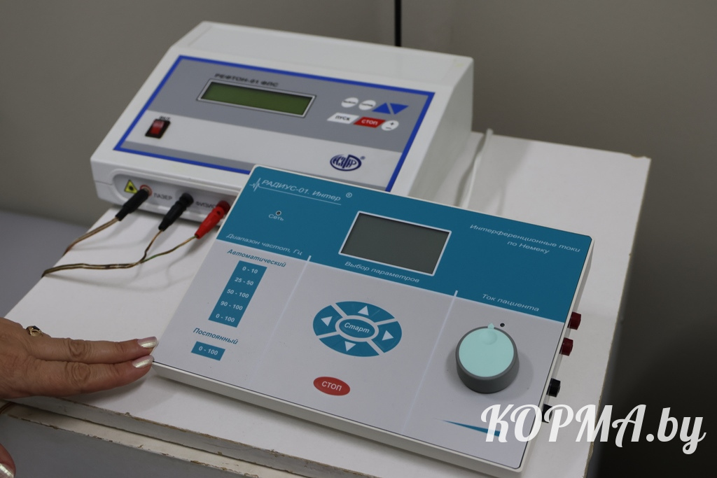 Аппараты лазеро-магнитоинфракрасной терапии «Рикта» способствуют сокращению сроков лечения широкого круга заболеваний, расширяя возможности амбулаторного лечения, а также обладают высоким профилактическим потенциалом, причём повышают эффективность применения медикаментов либо полного отказа от них. Также здесь в наличии имеются и новые аппараты ультразвуковой терапии, магнитотерапии, ультравысокочастотной терапии, облучатель УФ коротковолновой.