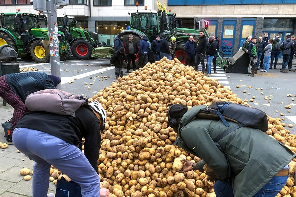 В ход идёт всё6 тракторы: булыжники, фейерверки и даже картофель. Последним оборонительным средством митингующие заполнили улицы Брюсселя так, что прохожие «на халяву» сгребают клубни, а для автомобилей дорожное полотно из картофеля стало настоящим квестом. Центр города превратился в место массовых беспорядков и нарушения общественного порядка. Европейские фермерские объединения заявили о 10 тысячах участников, выступающих против общей сельскохозяйственной политики ЕС. Чтобы противостоять бунту, полиции пришлось применить слезоточивый газ и водомёты. Однако подавление митингов проблему не решает. Может, настало время учитывать интересы людей, как ключевых фигурантов эффективного развития экономики? Или представители властей ЕС по-прежнему будут применять меры по снижению финансирования сельскохозяйственной отрасли, бросая аграриев на произвол судьбы?