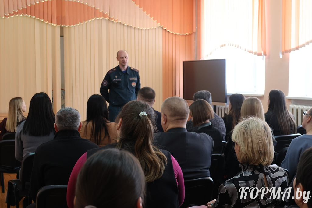 Также в рамках мероприятия состоялась встреча с коллективом СШ № 1 г.п. Корма, во время которой первый заместитель начальника Кормянского РОЧС Дмитрий Титовец напомнил присутствующим о правилах безопасного поведения на льду, а также важности установки автономных пожарных извещателей.