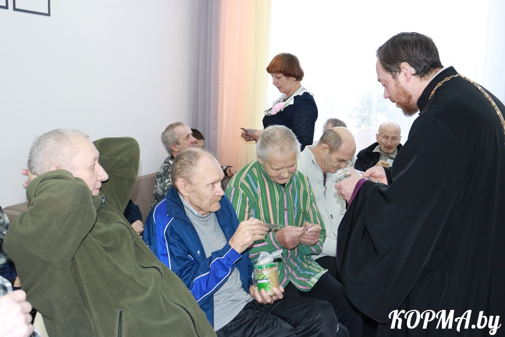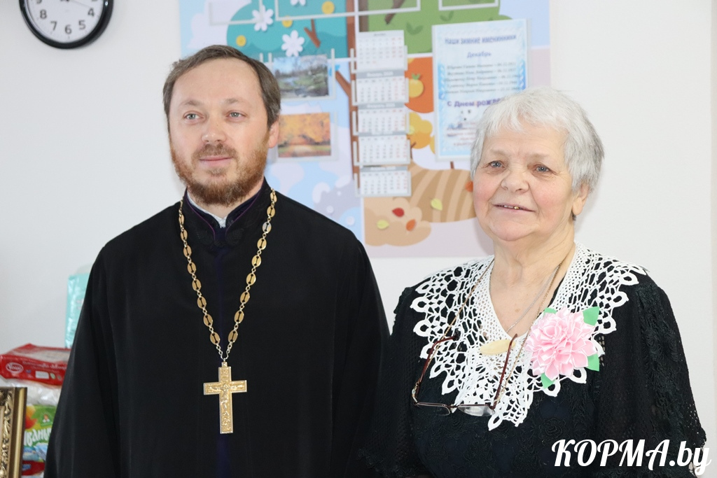 Накануне праздника Рождества Христова и в ходе акции «От всей души» в гостях у постояльцев отделения круглосуточного пребывания побывали настоятель храма Святителя Николая Чудотворца в г. п. Корма отец Георгий, церковный хор и вокальный ансамбль «Живые криницы».