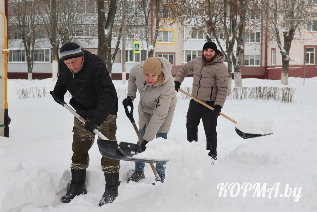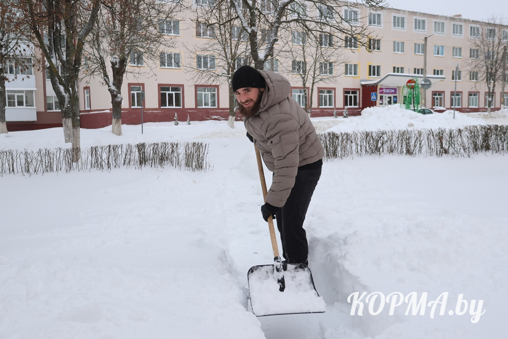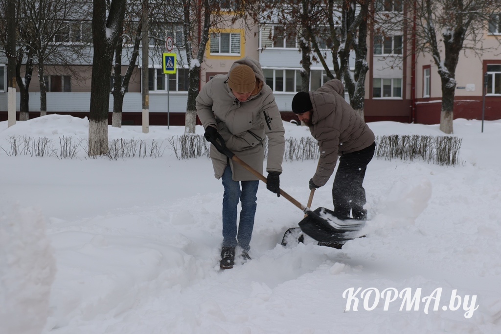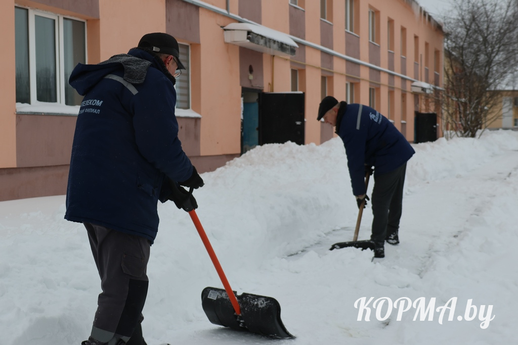 На помощь коммунальным службам вышли трудовые коллективы, а также жители горпосёлка. Активно идёт уборка снега во дворах многоэтажных домов. Кормянцы в один голос говорят, что чужой беды не бывает, а с последствиями непогоды лучше всего бороться сообща.