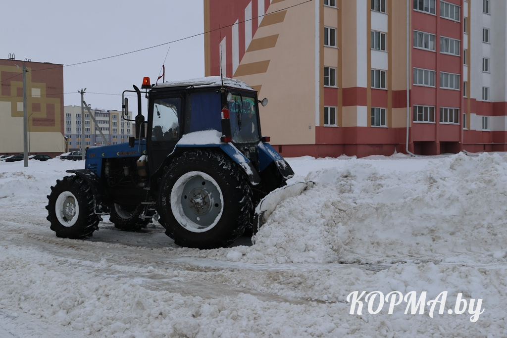 На борьбу со снегом вышли трудовые коллективы и жители г.п. Корма